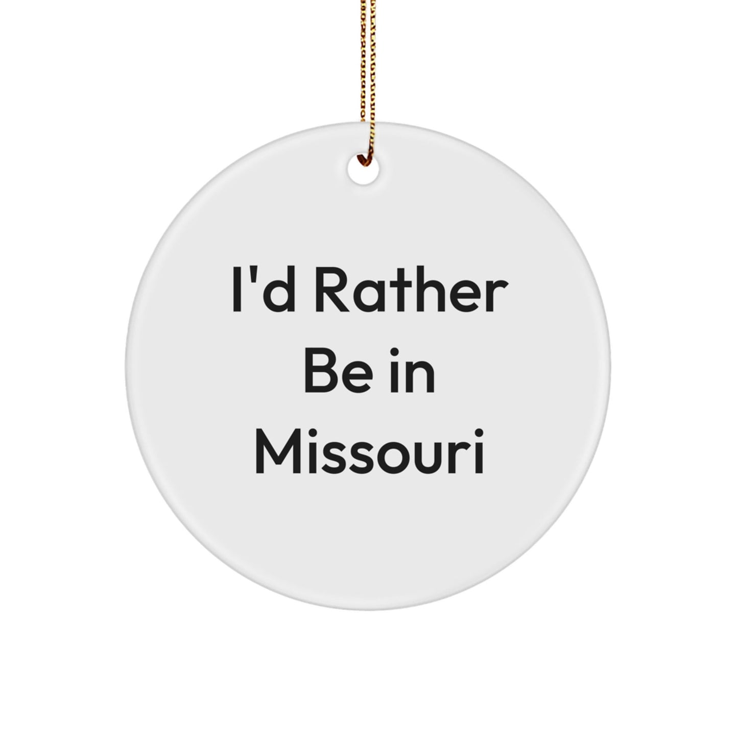 "keywords": "Missouri, Circle Ornament, I'd Rather Be In Missouri, Christmas Gifts, Gifts from Men, Gifts for Family, Funny Quote, Unique Gift, Missouri Enthusiasts, Show-Me State
