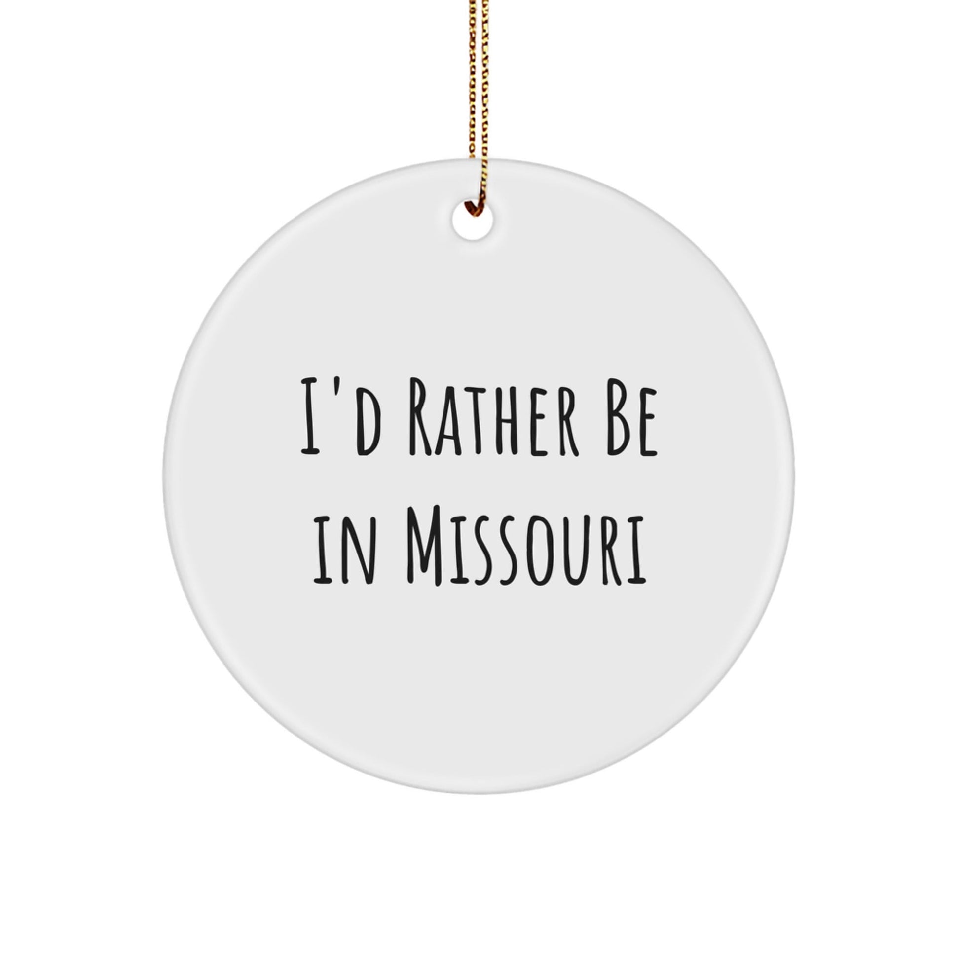 So why wait? Order your 'I'd Rather Be In Missouri' Circle Ornament today and show your love for the Show-Me State!