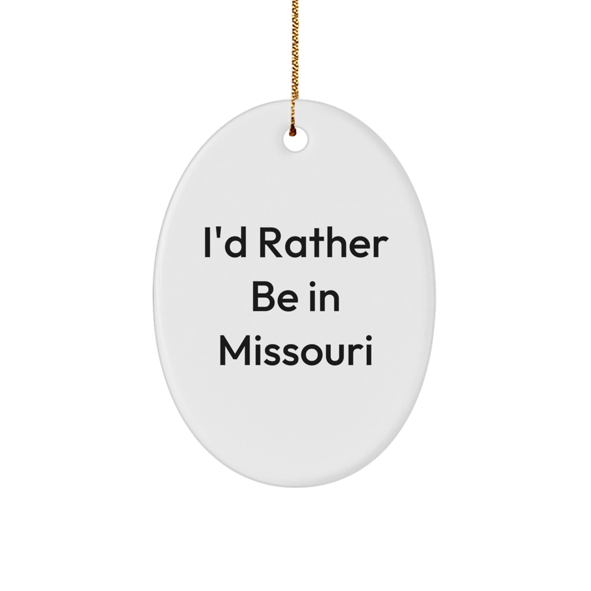 So why settle for a boring, generic gift when you can give something that shows you care? Order this I'd Rather Be In Missouri oval ornament today and make it a Christmas to remember!