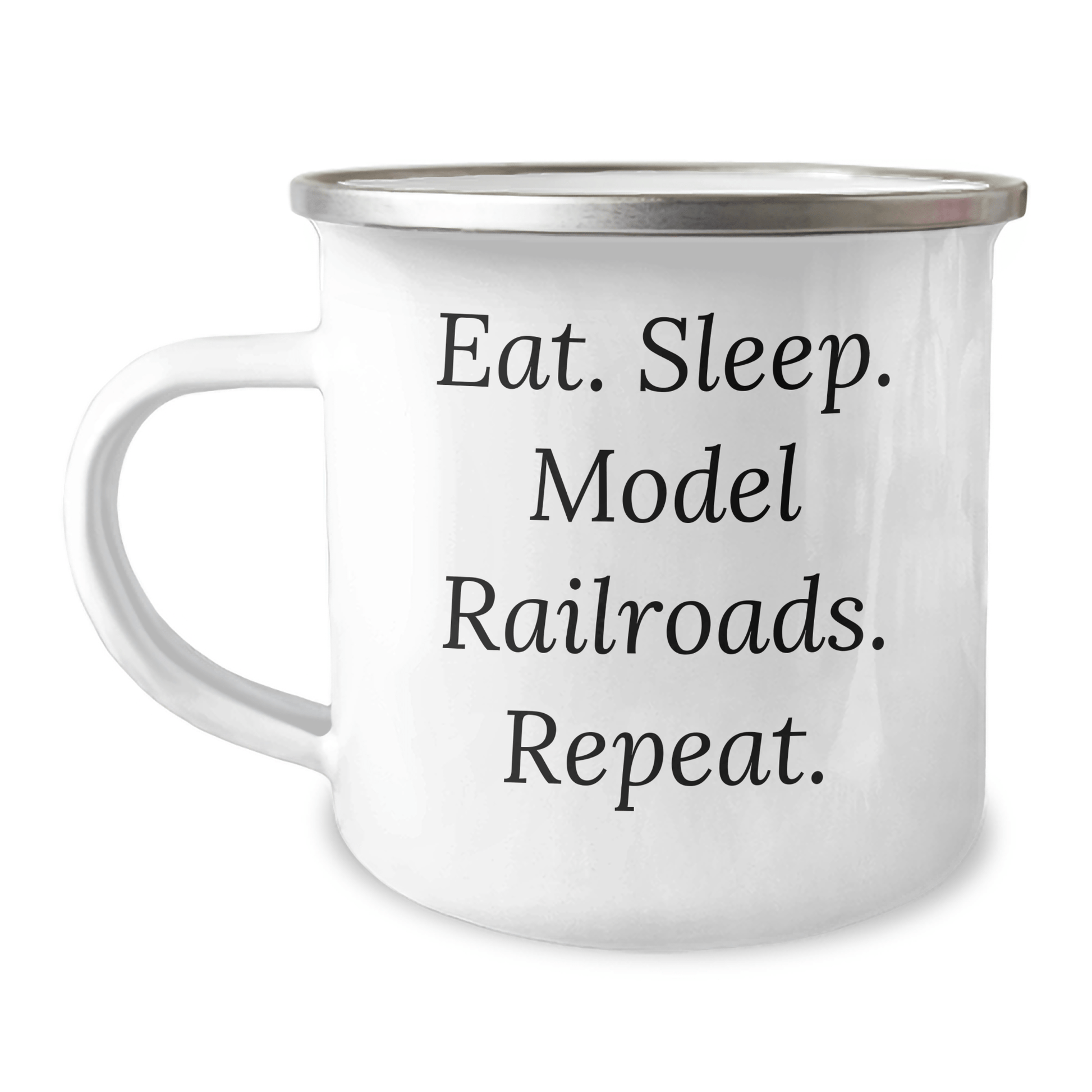 Get your Eat. Sleep. Model Railroads. Repeat. camping mug today and make it a gift to treasure!