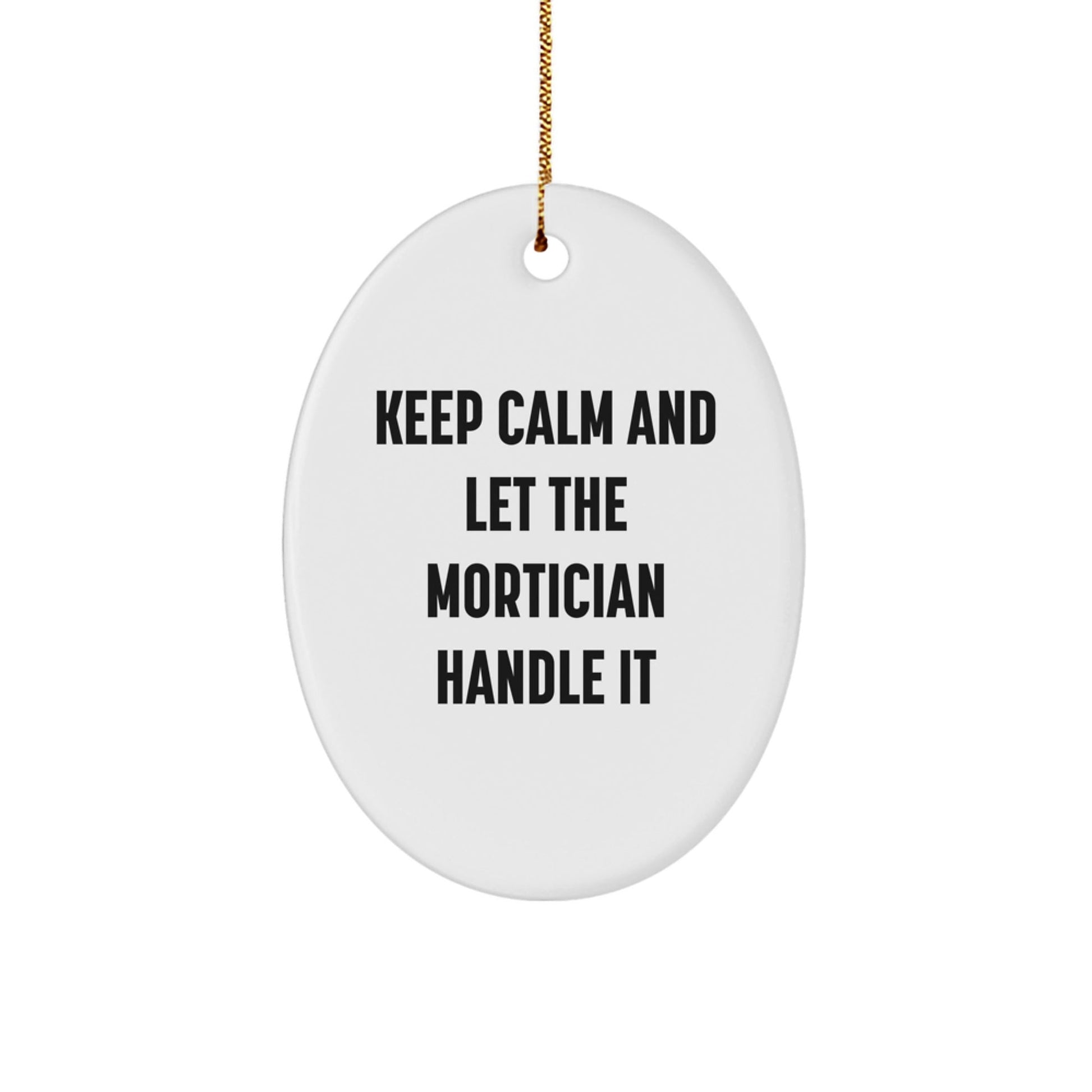Get ready to bring a smile to the face of your mortician friends and family with this unique and hilarious gift! This funny oval ornament is the perfect way to show your appreciation for their hard work and dedication. With its vibrant colors and sturdy construction, it's sure to be a conversation starter at any holiday gathering. Whether you're looking for a gift for a mortician or just want to add some humor to your holiday decor, this ornament is the perfect choice.