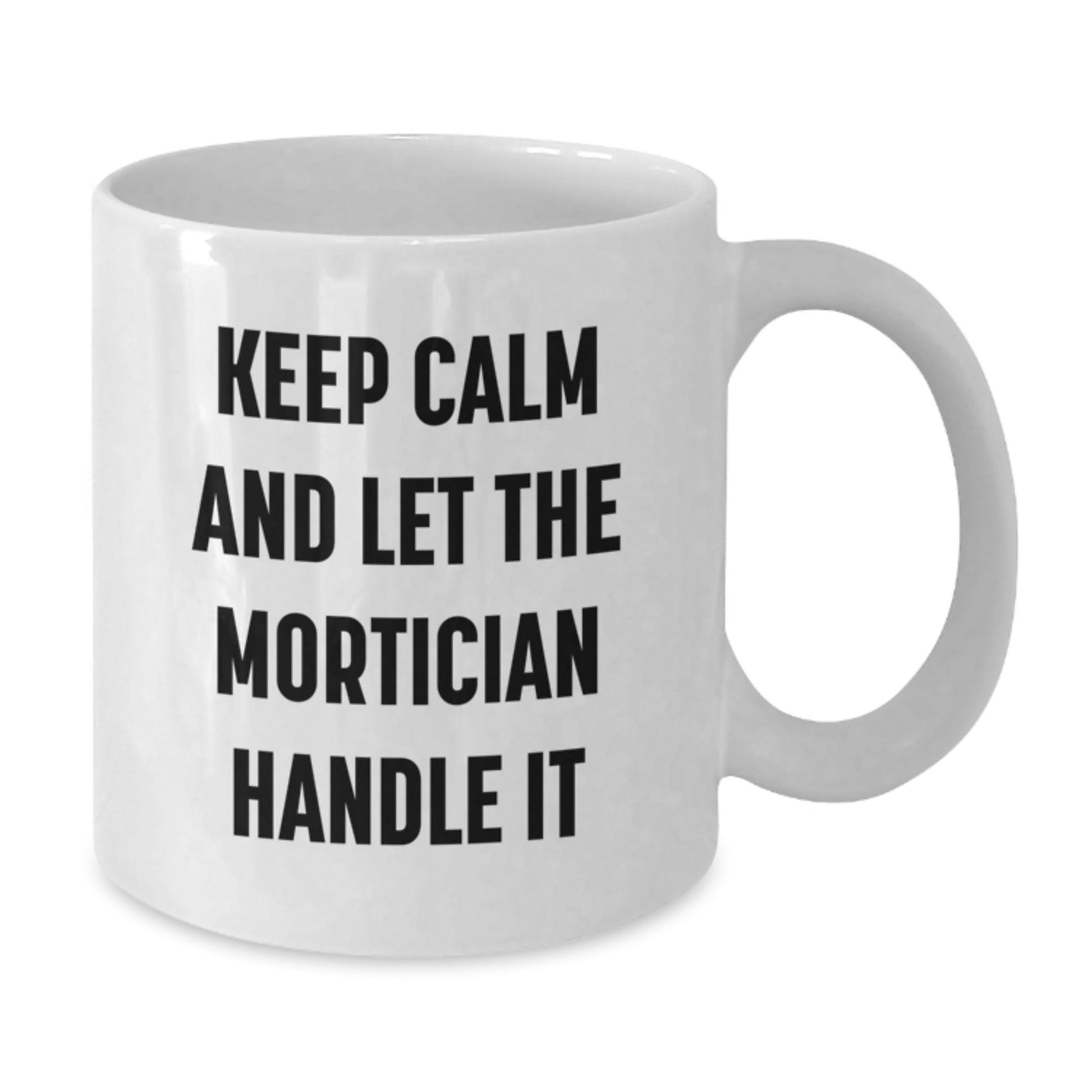 Are you looking for a unique gift for the mortician in your life? Look no further! Our Keep Calm and Let Them Handle It white coffee mug is the perfect way to show your appreciation for their hard work. Made from ceramic and available in 11oz or 15oz capacity, this mug is microwave and dishwasher safe.