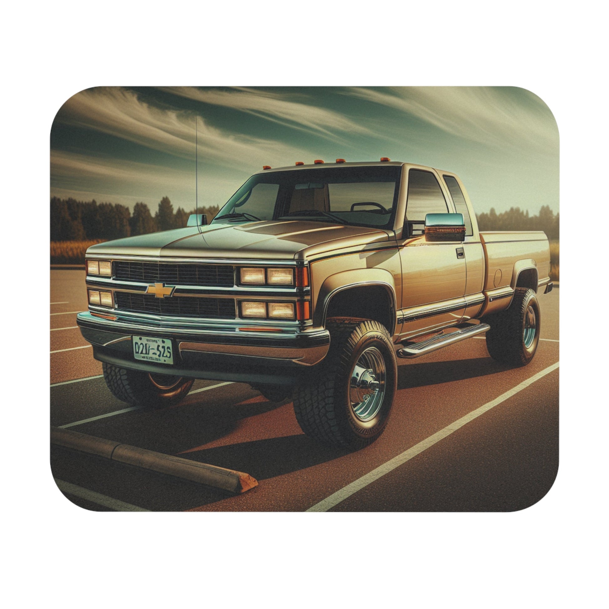 This mouse pad features a design of a 1989 Chevy 4x4 Truck, giving off a nostalgic and rugged vibe. Perfect for truck enthusiasts or anyone who loves vintage vehicles. Ideal for adding a touch of personality to your workspace or as a thoughtful gift for a loved one. Great for Father's Day, birthdays, or any occasion for truck lovers.