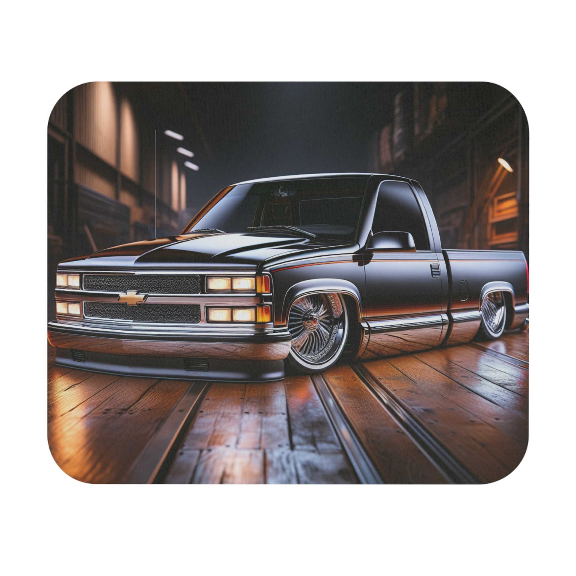 This rectangular mouse pad features a lowered 1997 Chevy Truck design, adding a touch of nostalgia and vintage style to your workspace. Perfect for truck enthusiasts and vintage car lovers. Ideal for gifting on Father's Day, birthdays, or as a thoughtful gesture for someone who loves classic vehicles.