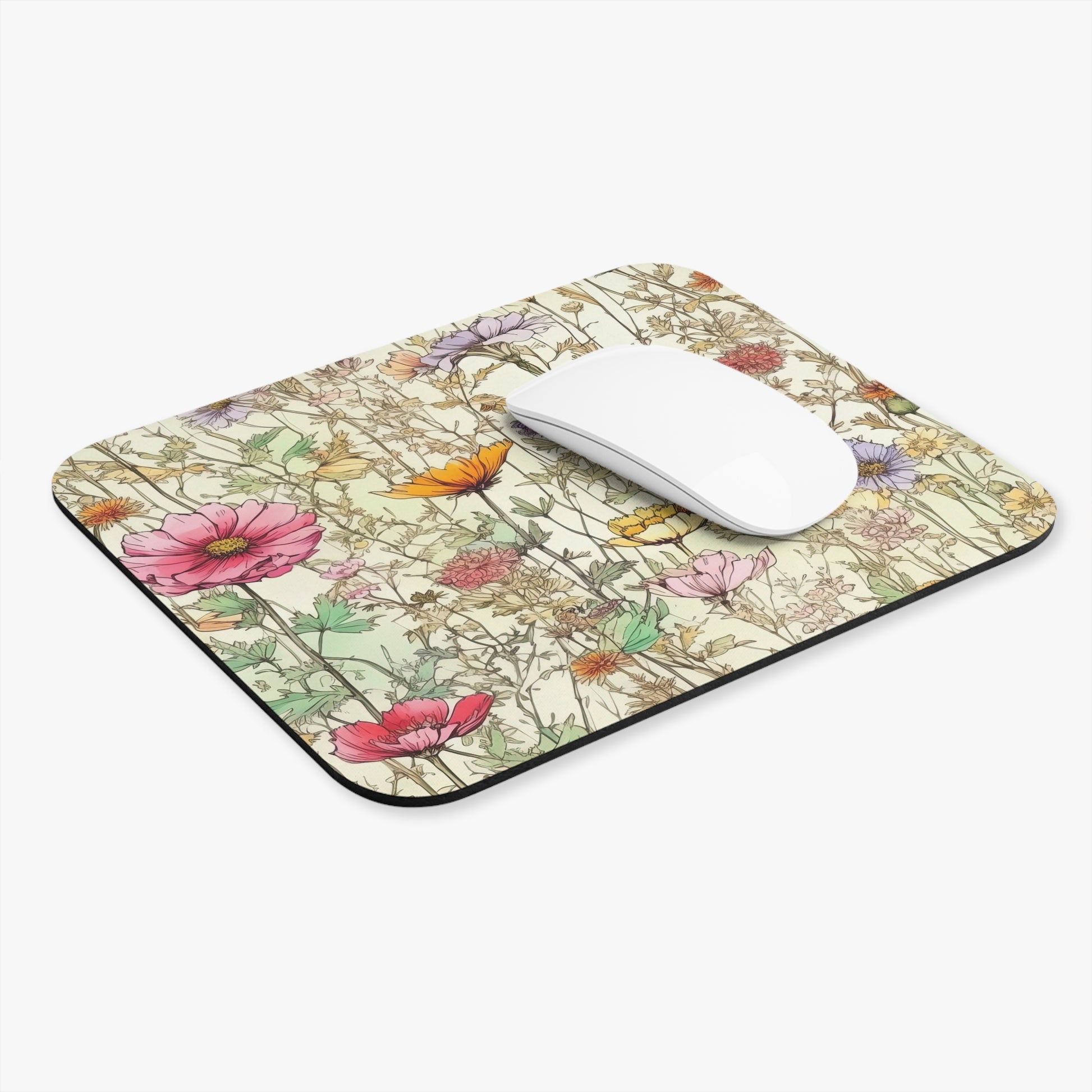 Bring a touch of nature to your workspace with this vibrant rectangular mouse pad featuring a design of wildflowers. Perfect for nature lovers and those looking to add a pop of color to their desk. Ideal for everyday use or as a thoughtful gift for someone who appreciates the beauty of wildflowers. Great for use during springtime, Mother's Day, or any occasion.