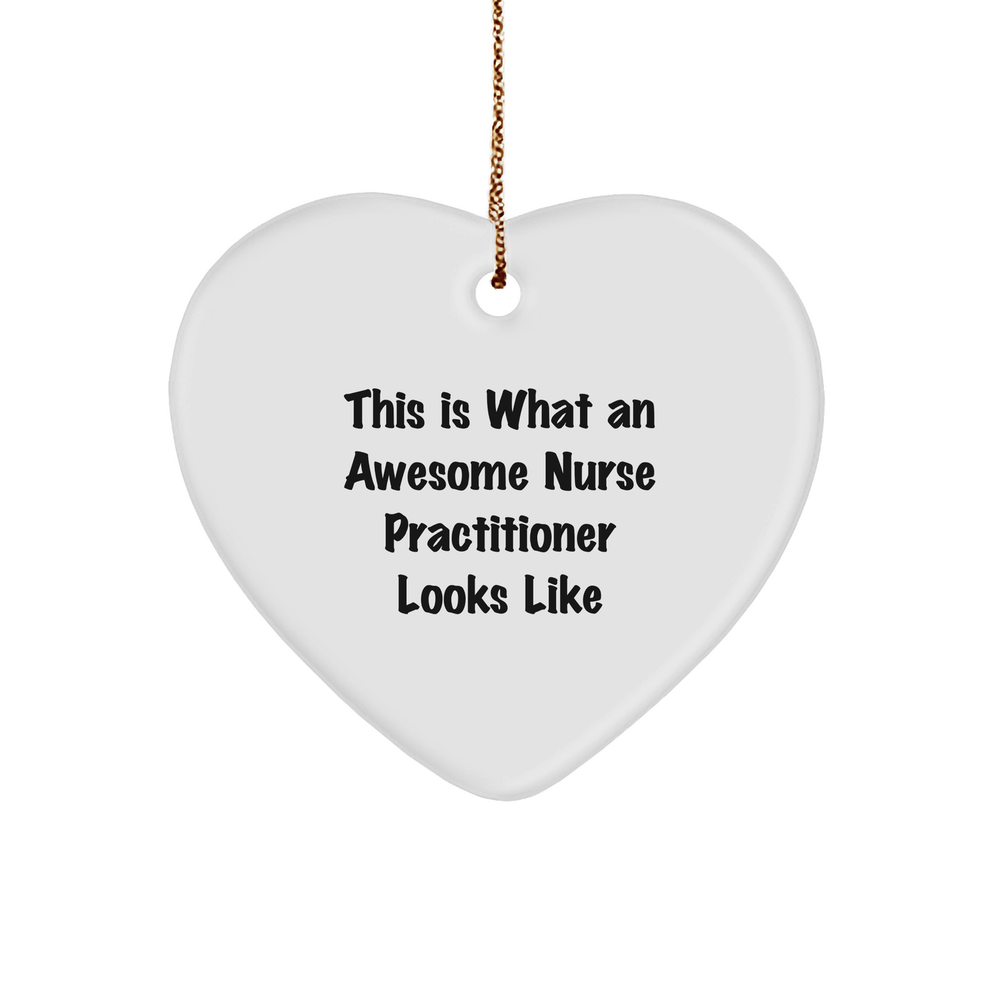 Are you searching for a thoughtful gift for the amazing Nurse Practitioner in your life? Look no further! This heartwarming 'This Is What An Awesome Nurse Practitioner Looks Like' Heart Ornament is the perfect way to show your appreciation and gratitude. Made from sturdy MDF with a high-gloss plastic finish, this ornament is designed to last and withstand the rigors of daily use. The vibrant colors and festive gold cord make it easy to hang and display, adding a touch of warmth and love to any room. Whether you're a friend, family member, or coworker, this gift is sure to delight the Nurse Practitioner in your life. So why wait? Get this heartwarming gift today and let them know how much you care!