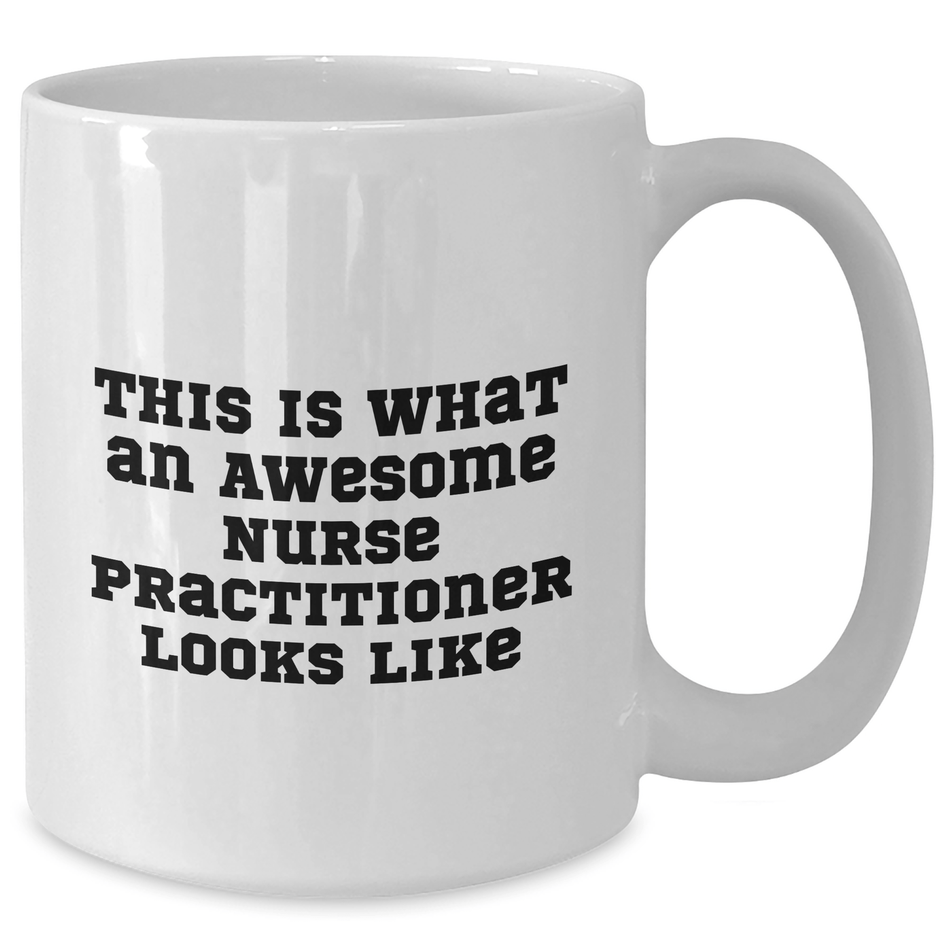 - Showcase your pride as a talented Nurse Practitioner with this 'This Is What An Awesome Nurse Practitioner Looks Like' White Coffee Mug, perfect for daily use at the hospital or office, with a spacious 11oz or 15oz capacity to hold your favorite coffee or tea.