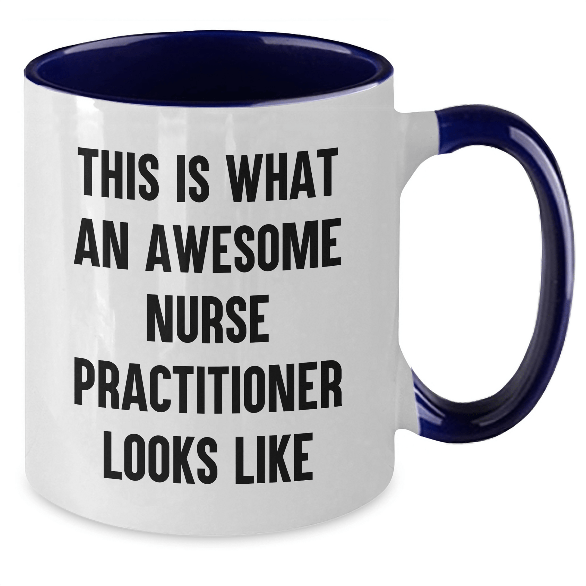 - The ideal gift for Nurse Practitioners who love coffee and a good laugh. This two-tone coffee mug is made from ceramic and features the inspirational quote, 'This Is What An Awesome Nurse Practitioner Looks Like'.