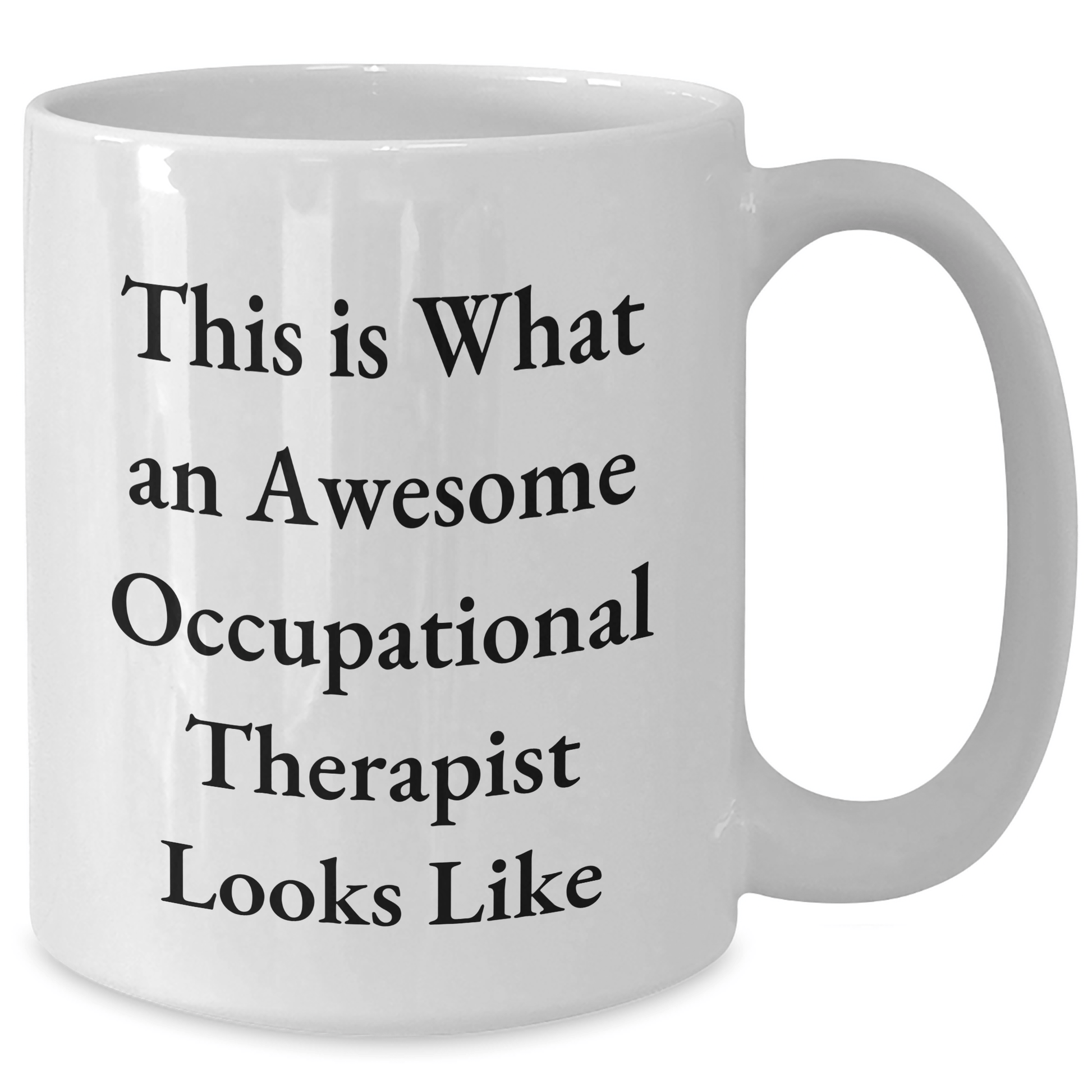 If you're looking for a unique gift for the Occupational Therapist in your life, look no further! This hilarious quote, 'This Is What An Awesome Occupational Therapist Looks Like', is the perfect way to show your appreciation for their hard work and dedication. Our White Coffee Mug is made from ceramic, microwave and dishwasher safe, and available in 11oz or 15oz capacity. It's the perfect way to start your day or enjoy a cup of coffee with a friend. Whether you're a friend, family member, or coworker, this gift is sure to bring a smile to their face.
