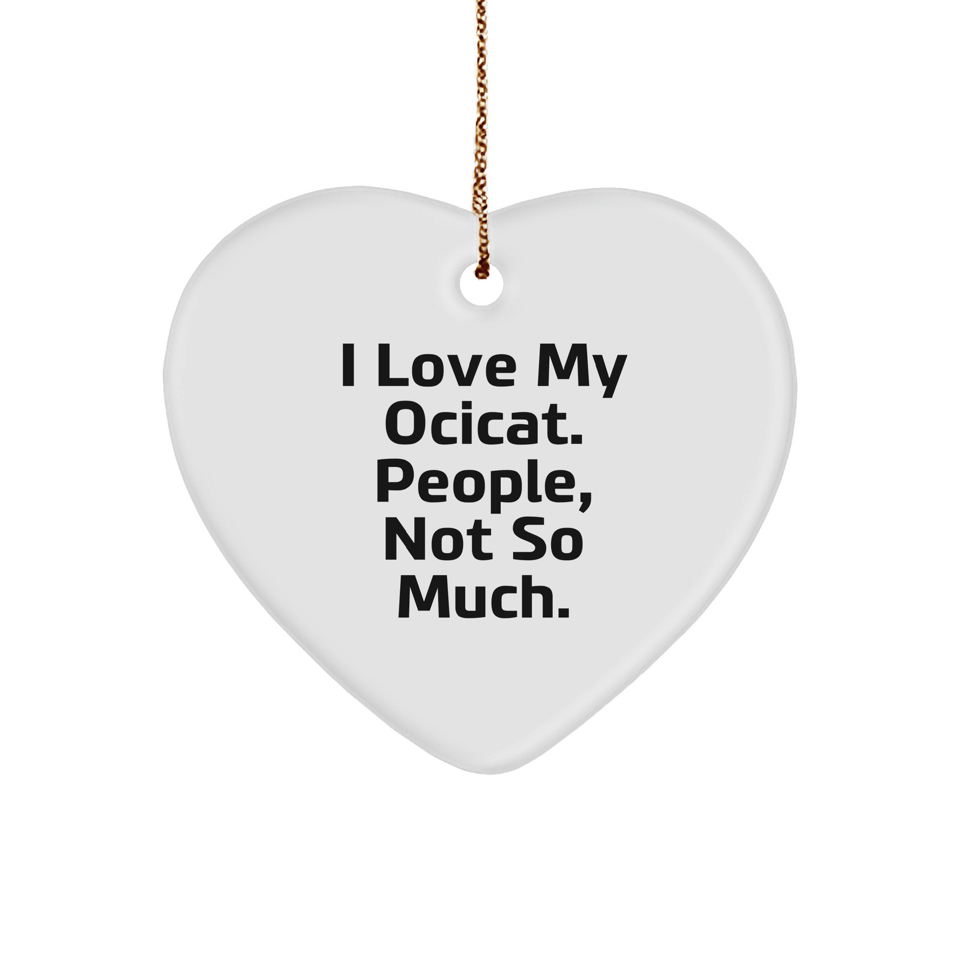 - Dazzle your loved ones with a unique 'I Love My Ocicat. People, Not So Much.' Heart Ornament, crafted from sturdy MDF with a high-gloss plastic finish, ensuring a long-lasting design that captures the beauty of your Ocicat's heart. This vibrant ornament is perfect for gifting to Ocicat enthusiasts, making it a thoughtful present for any occasion. (220 chars)