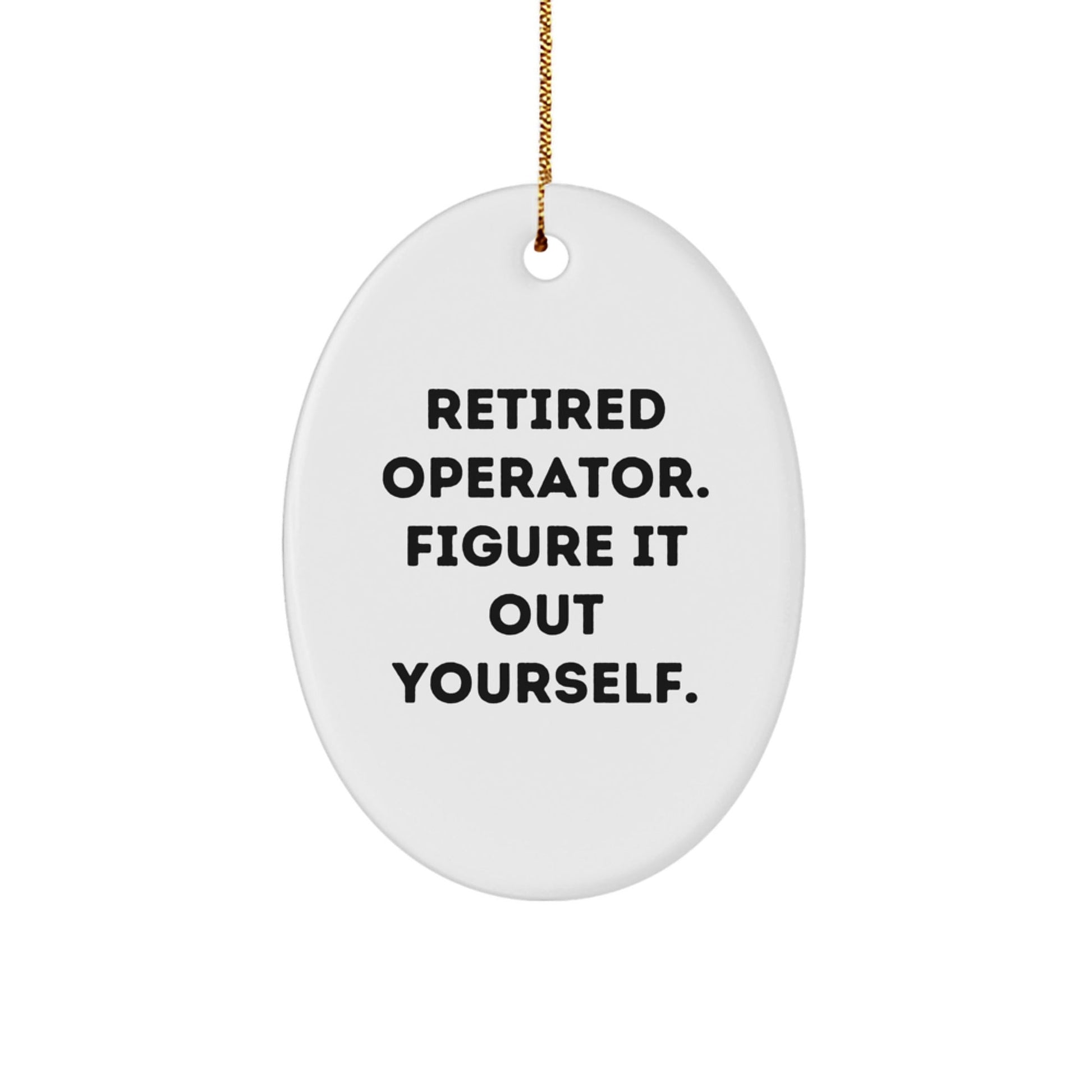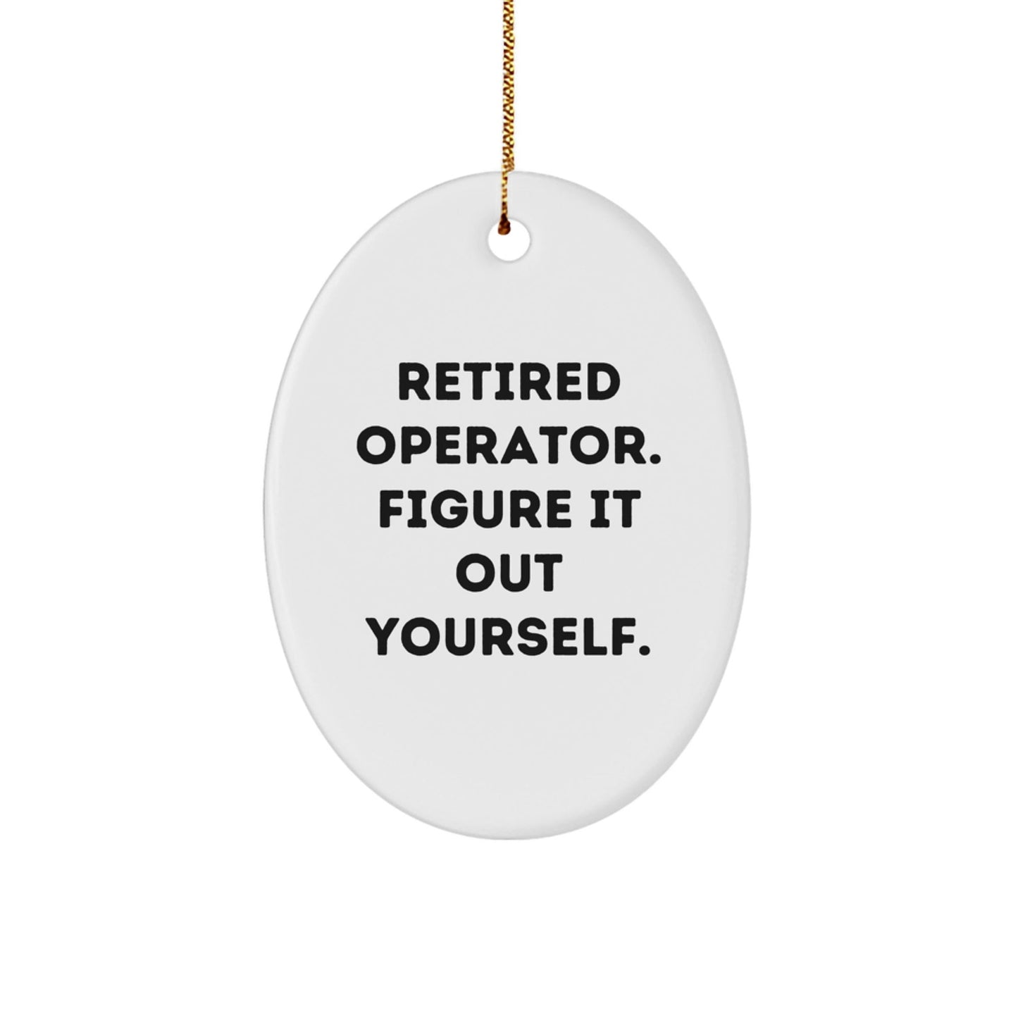 - This Operator Oval Ornament is a thoughtful gift for any Operator enthusiast, showcasing a fun and inspirational quote: 'Retired Operator. Figure It Out Yourself.'
