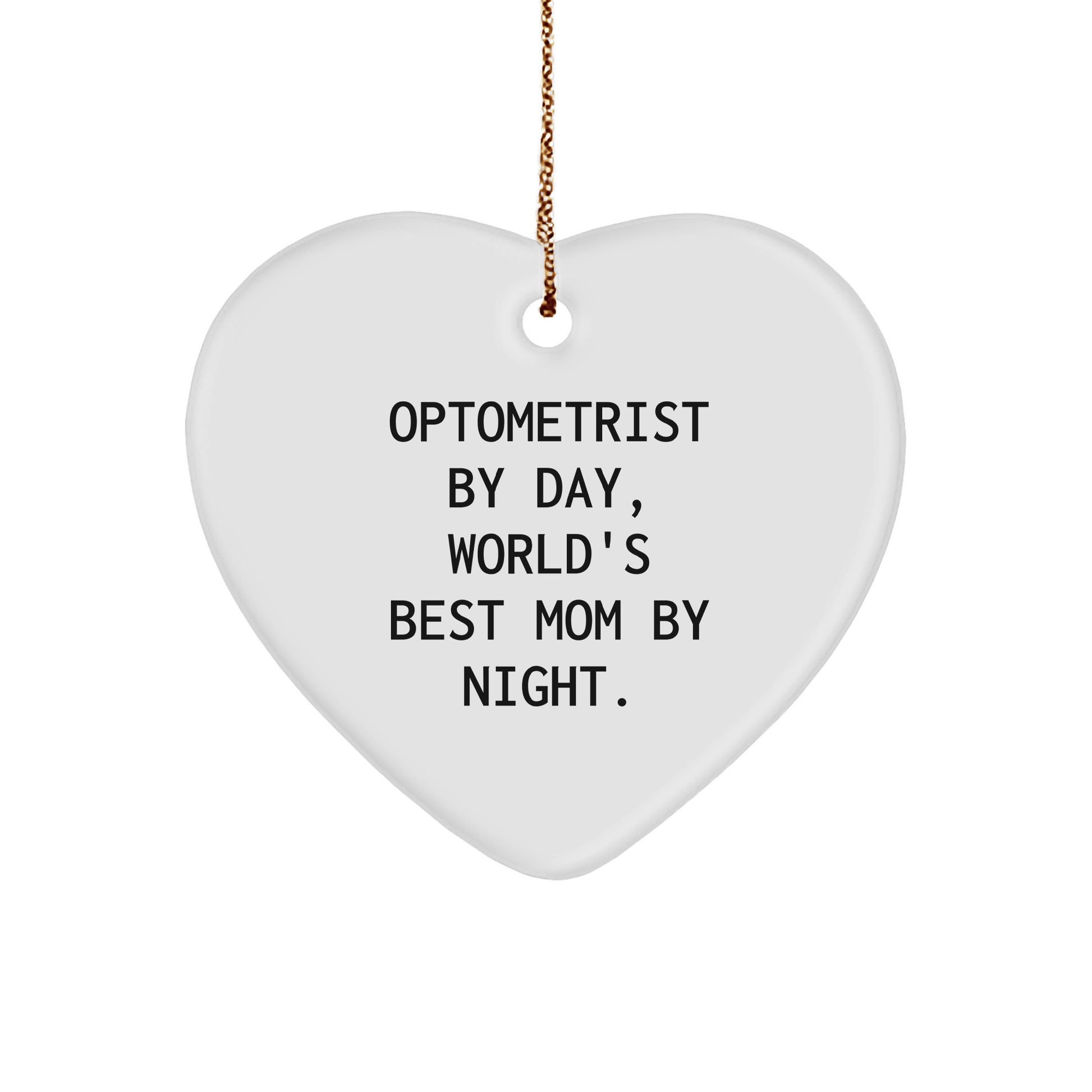 Are you looking for a unique and funny gift for an optometrist you know? Look no further! This heart-shaped ornament is a perfect way to show your appreciation for their hard work and dedication. With the quote 'Optometrist By Day, World's Best Mom By Night.', it's a great way to poke fun at the busy lives of optometrists and the amazing job they do.