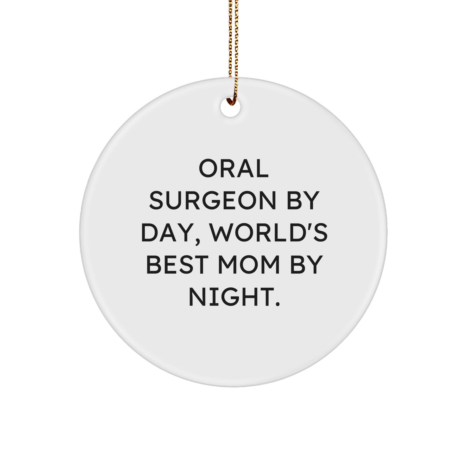- This 'Oral Surgeon By Day, World's Best Mom By Night.' circle ornament is the ideal gift for any oral surgeon who wants to show off their fun side. The vibrant design is sure to bring a smile to their face and a touch of personality to their office or home. With its durable MDF construction and high-gloss plastic finish, this ornament is built to last and can be enjoyed for years to come.
