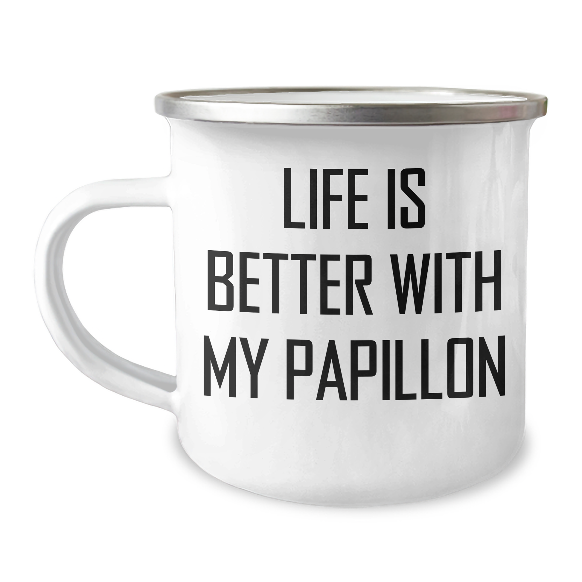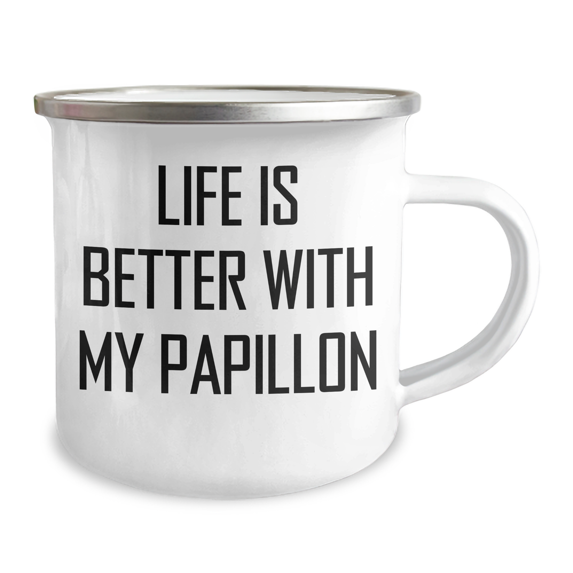 - Give the gift of adventure and memories with this unique and thoughtful camping mug, 'Life Is Better With My Papillon'