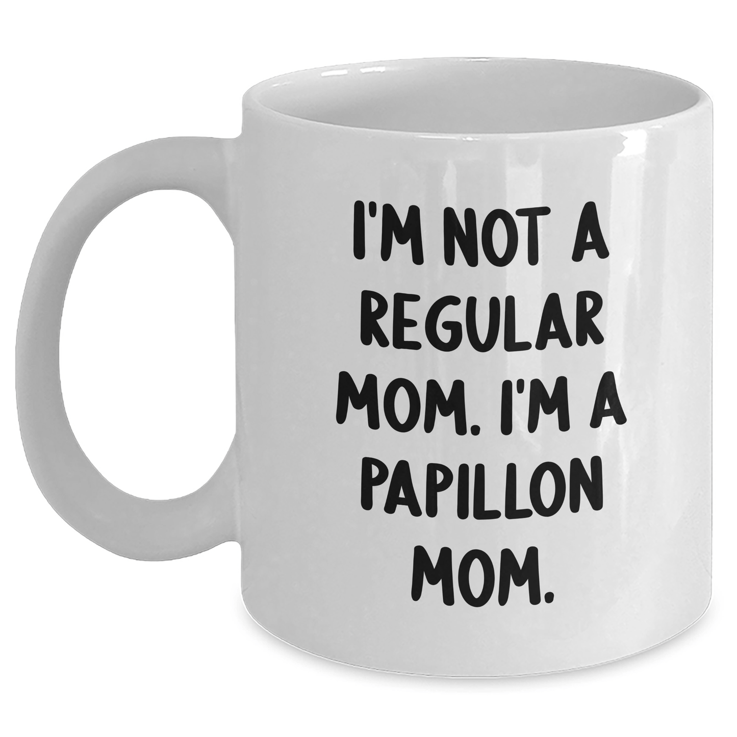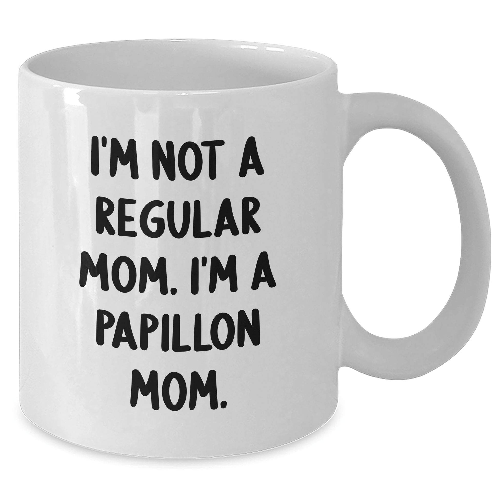 - The quote 'I'm Not A Regular Mom. I'm A Papillon Mom.' is a humorous way to express your love and dedication to your furry friend, making it a thoughtful gift for any Papillon Dog enthusiast.