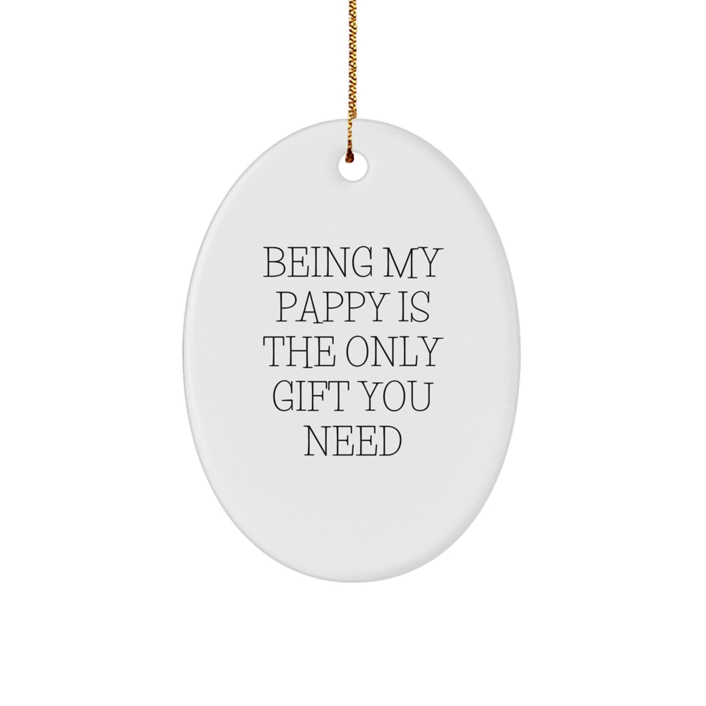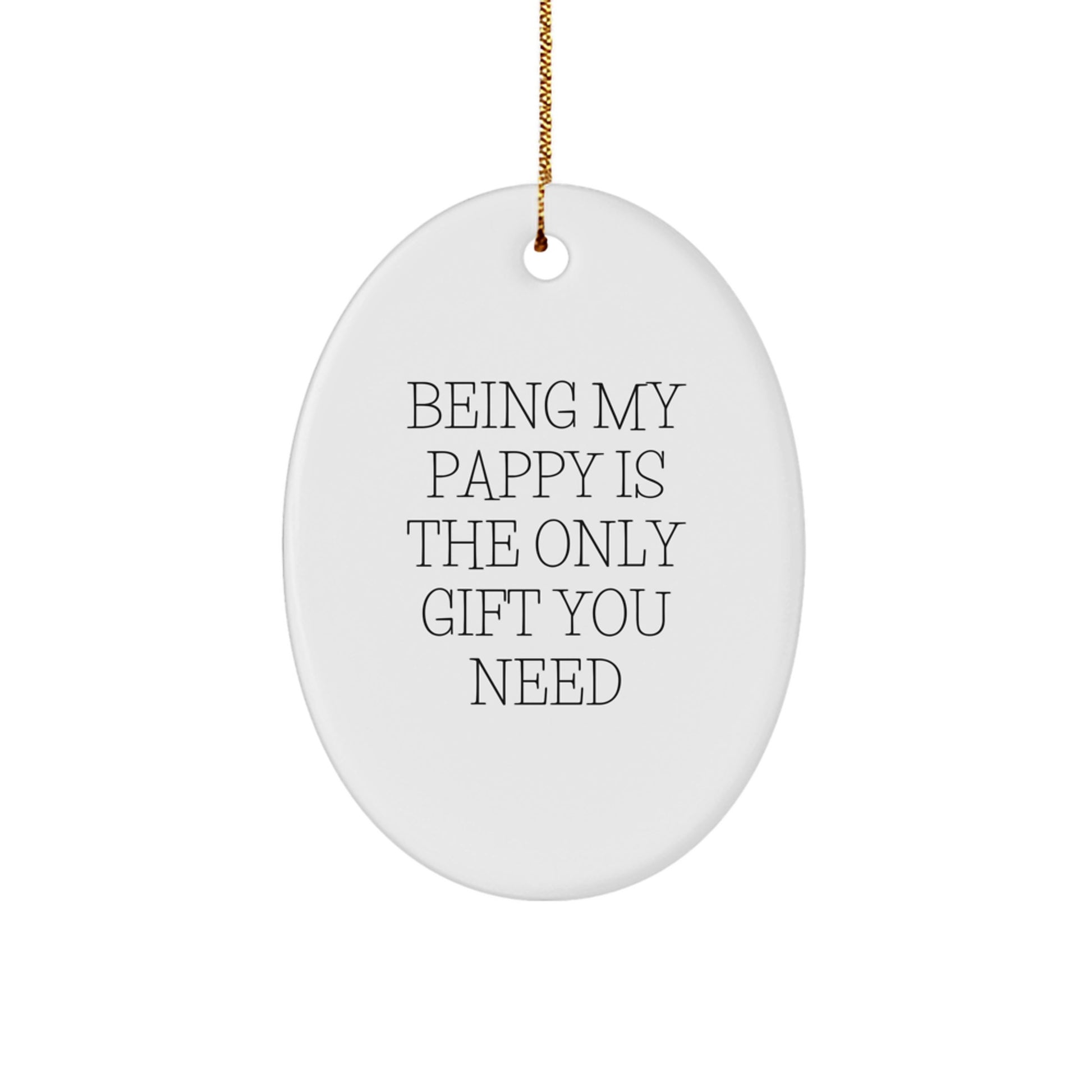 - Make a memorable gift for your loved ones with our 'Being My Pappy Is The Only Gift You Need' Oval Ornament. This unique and thoughtful gift is perfect for expressing your love and appreciation for your Pappy, and its beautiful design ensures it will be treasured for years to come.