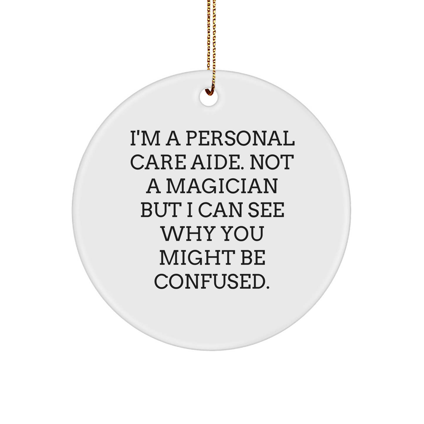 Are you a Personal Care Aide looking for a unique gift for your colleagues or a thoughtful present for yourself? Look no further! This circle ornament is the perfect addition to any room, and its funny quote will bring a smile to your face every time you see it.