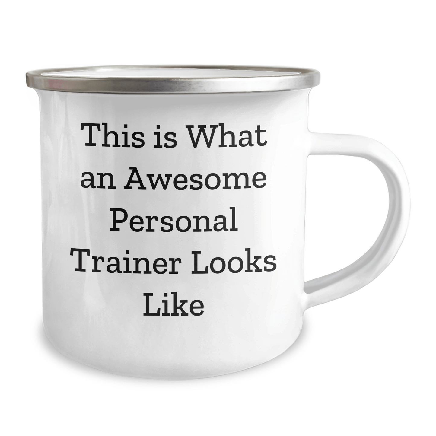 - Unique and thoughtful gift for personal trainers, perfect for any occasion, including graduation. The inspirational quote, 'This Is What An Awesome Personal Trainer Looks Like', is sure to motivate and inspire. Made from sturdy stainless steel with enamel finish, this camping mug is easy to clean and will withstand frequent use.