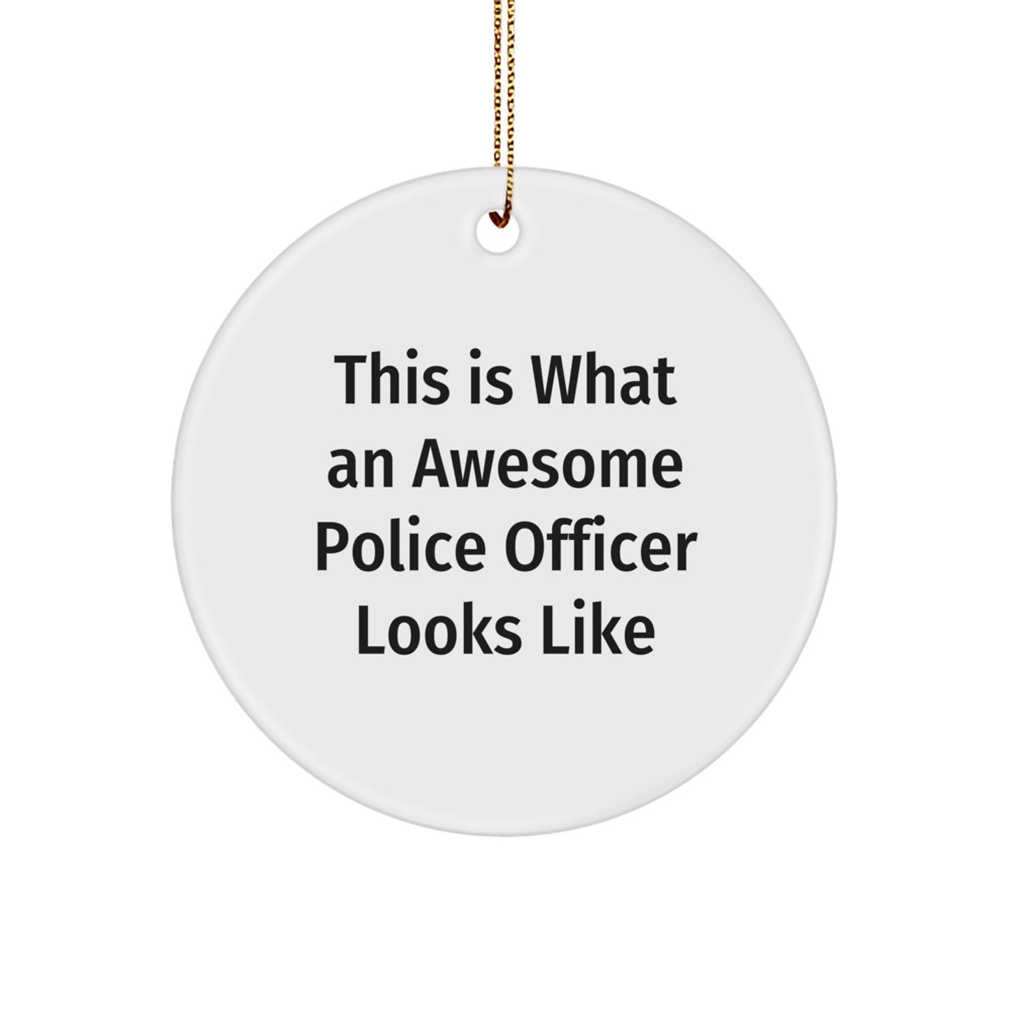 The quote 'This Is What An Awesome Police Officer Looks Like' is a great reminder of the importance of police officers in our communities. This ornament is a great way to honor their service and show your support. Whether you're a police officer yourself or just appreciate the work they do, this ornament is a thoughtful and meaningful gift.