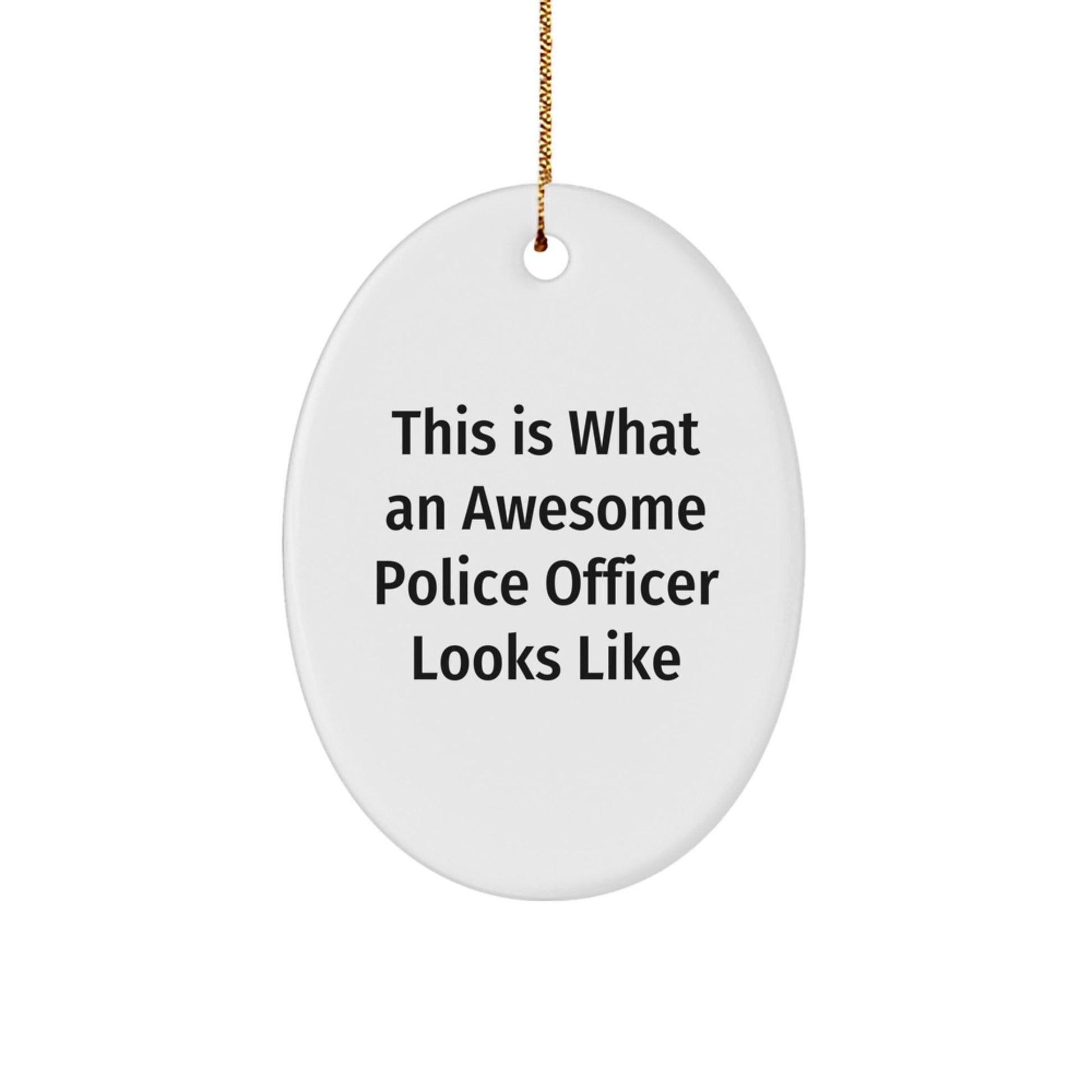 Are you looking for a unique and thoughtful gift for the amazing police officer in your life? This quote 'This Is What An Awesome Police Officer Looks Like' is the perfect way to show your appreciation and gratitude. Our Police Officer Oval Ornament is a beautiful and vibrant addition to any room, and its durability ensures it will remain a cherished keepsake for years to come. Whether you're a police officer yourself or just a fan of these brave men and women, this ornament is a great way to celebrate their hard work and dedication. So why not give a gift that truly stands out?