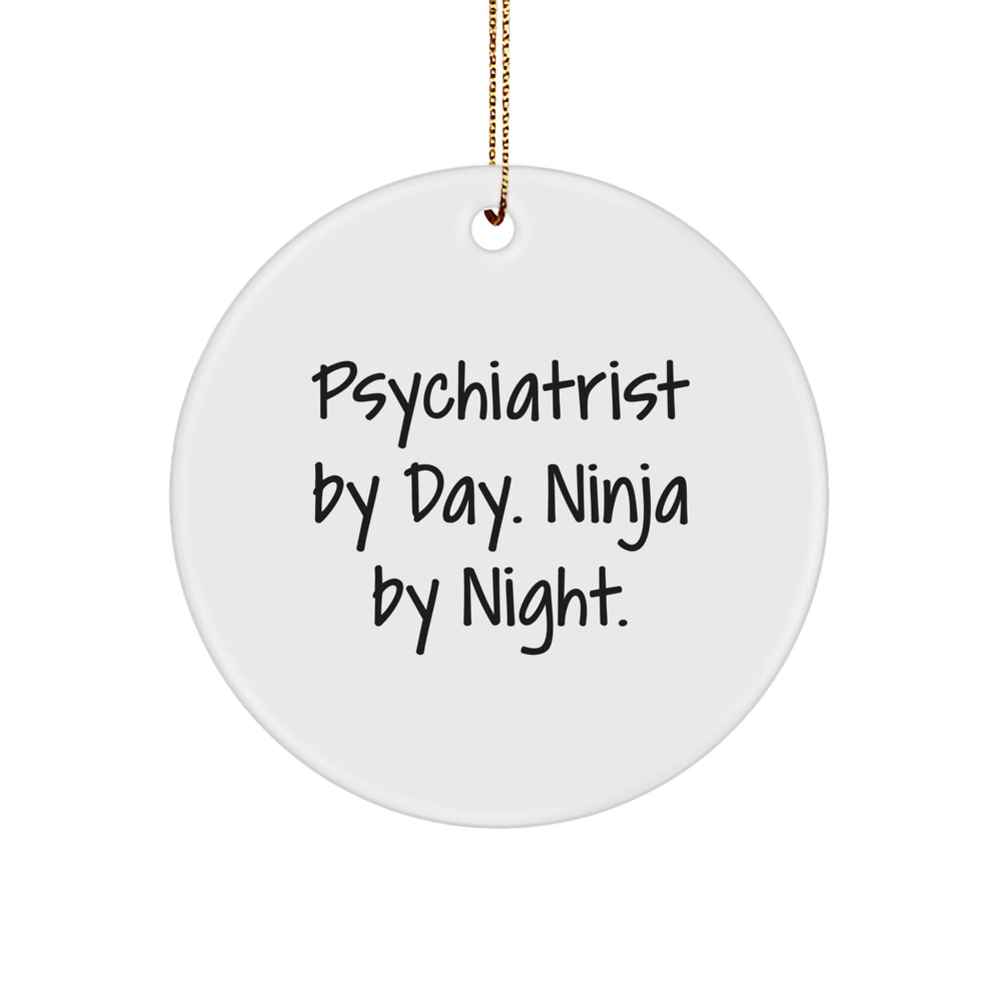 - This 'Psychiatrist By Day. Ninja By Night.' quote Circle Ornament is the ideal gift for Psychiatrists who are also ninjas at heart! Made from sturdy MDF and vibrantly printed via Sublimation, this ornament is lightweight, resistant to breaking, and easy to hang.