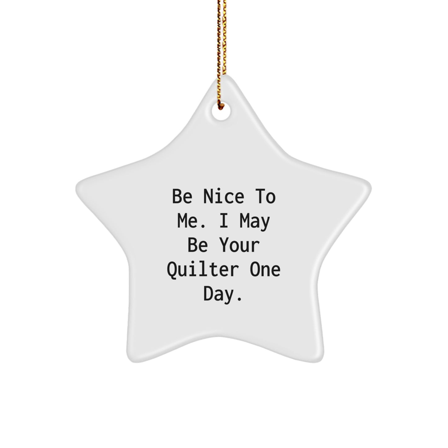 - This 'Be Nice To Me. I May Be Your Quilter One Day.' Quilter Star Ornament is a unique and thoughtful gift for any Quilter, made from sturdy MDF with a high-gloss plastic finish that's vibrant, long-lasting, and resistant to breaking.