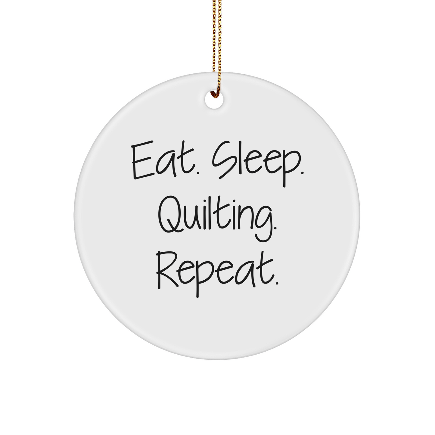 - Experience the joy of quilting with this Eat. Sleep. Quilting. Repeat. Circle Ornament, designed to inspire and motivate quilting enthusiasts to keep on quilting.