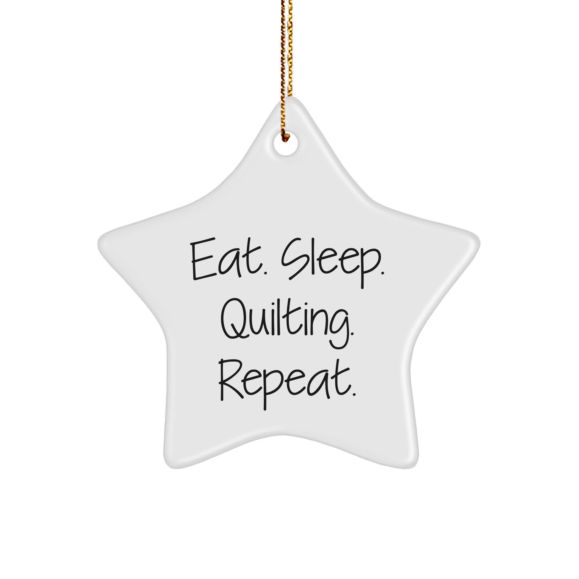 The Eat. Sleep. Quilting. Repeat. Star Ornament is lightweight and resistant to breaking, making it a great choice for households with children or pets. And with its festive gold cord, it's easy to hang and add a touch of quilting magic to any room.