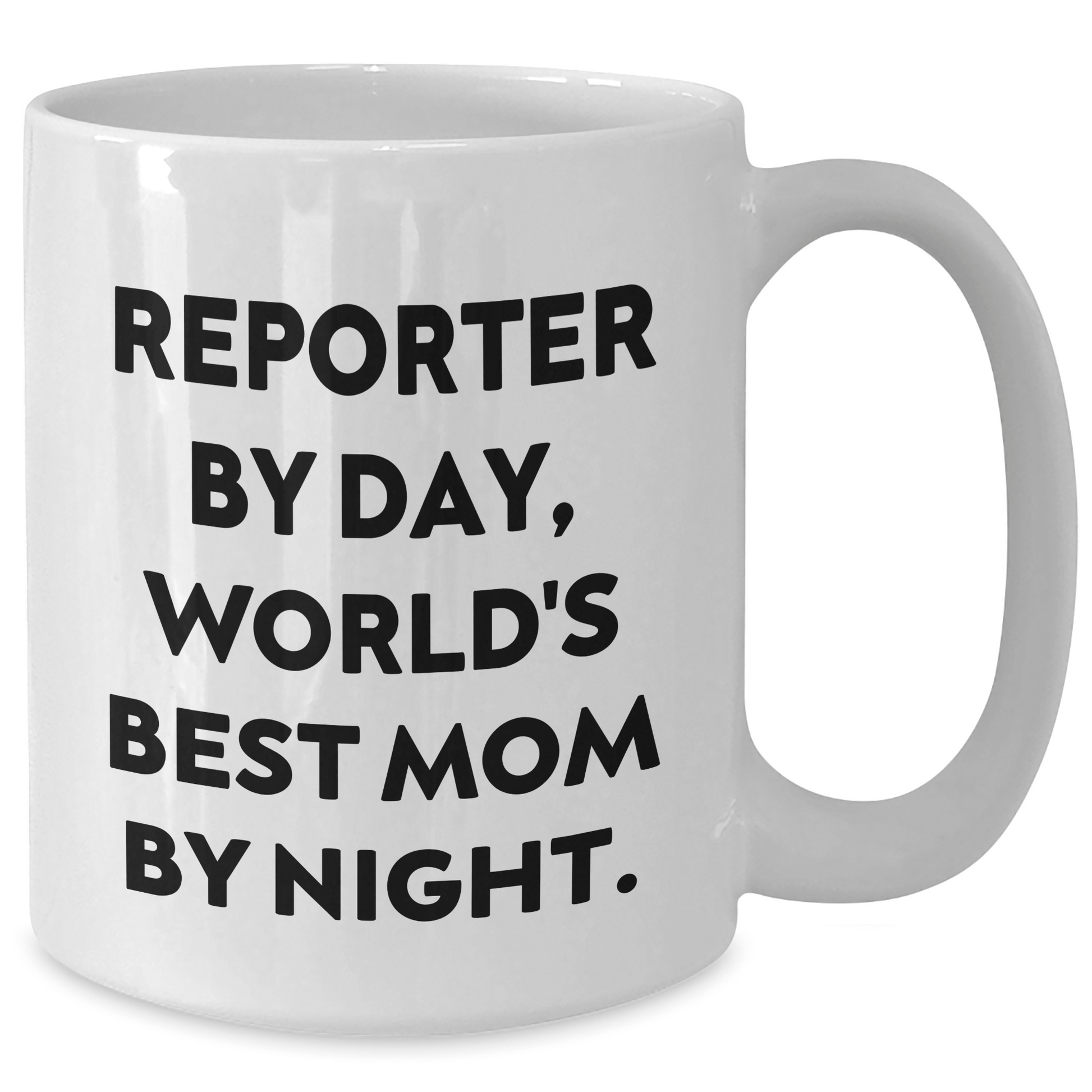 Are you looking for a unique gift for the reporter in your life? Look no further! This funny white coffee mug is perfect for any reporter who loves to work hard and play hard. With the quote 'Reporter By Day, World's Best Mom By Night.' printed on it, this mug is sure to bring a smile to their face. Whether it's a graduation gift or just a fun way to start the day, this mug is the perfect choice.