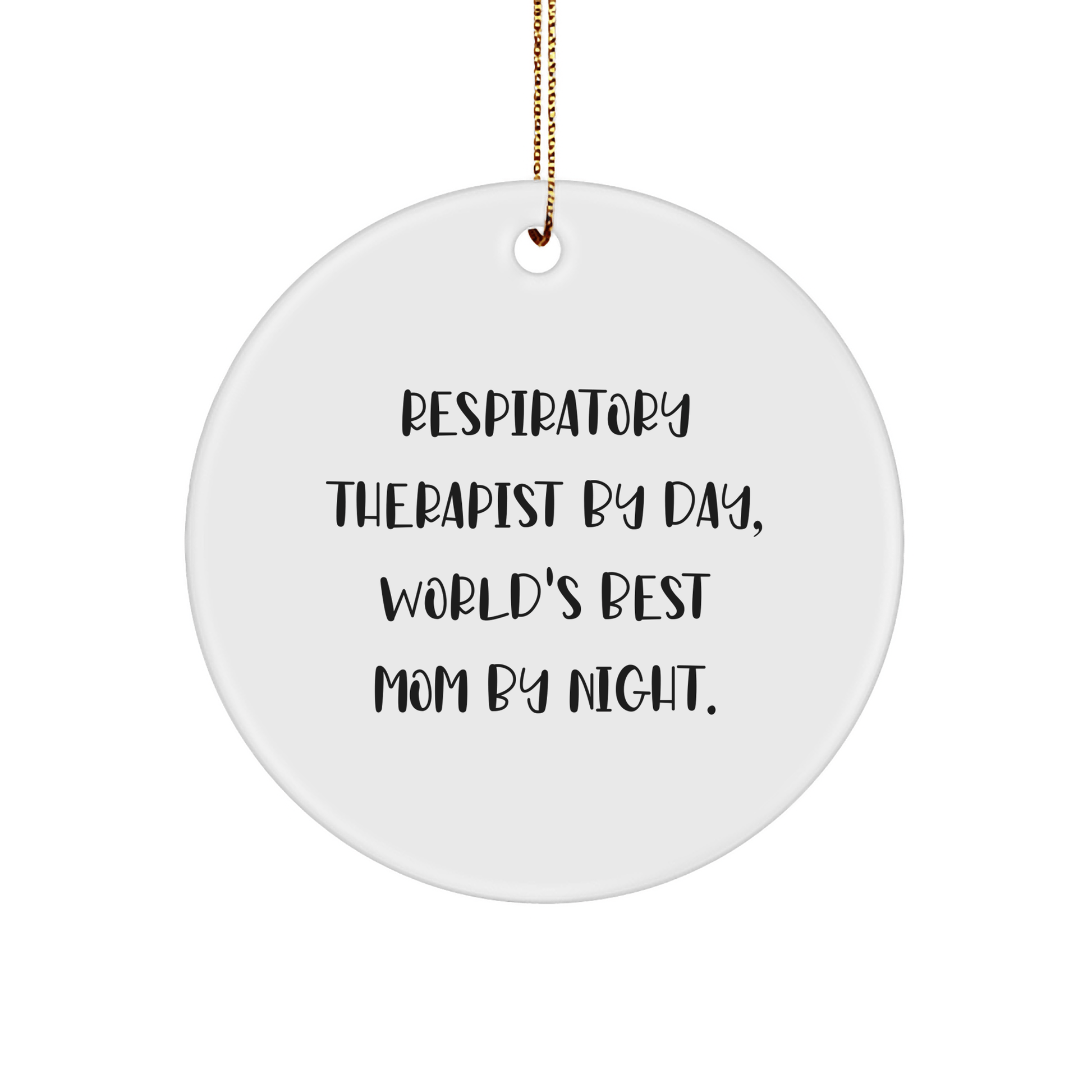 - This Circle Ornament features a funny quote that says 'Respiratory Therapist By Day, World's Best Mom By Night.' It's a unique and creative way to acknowledge your Respiratory Therapist's dual roles as a caregiver and a mom.