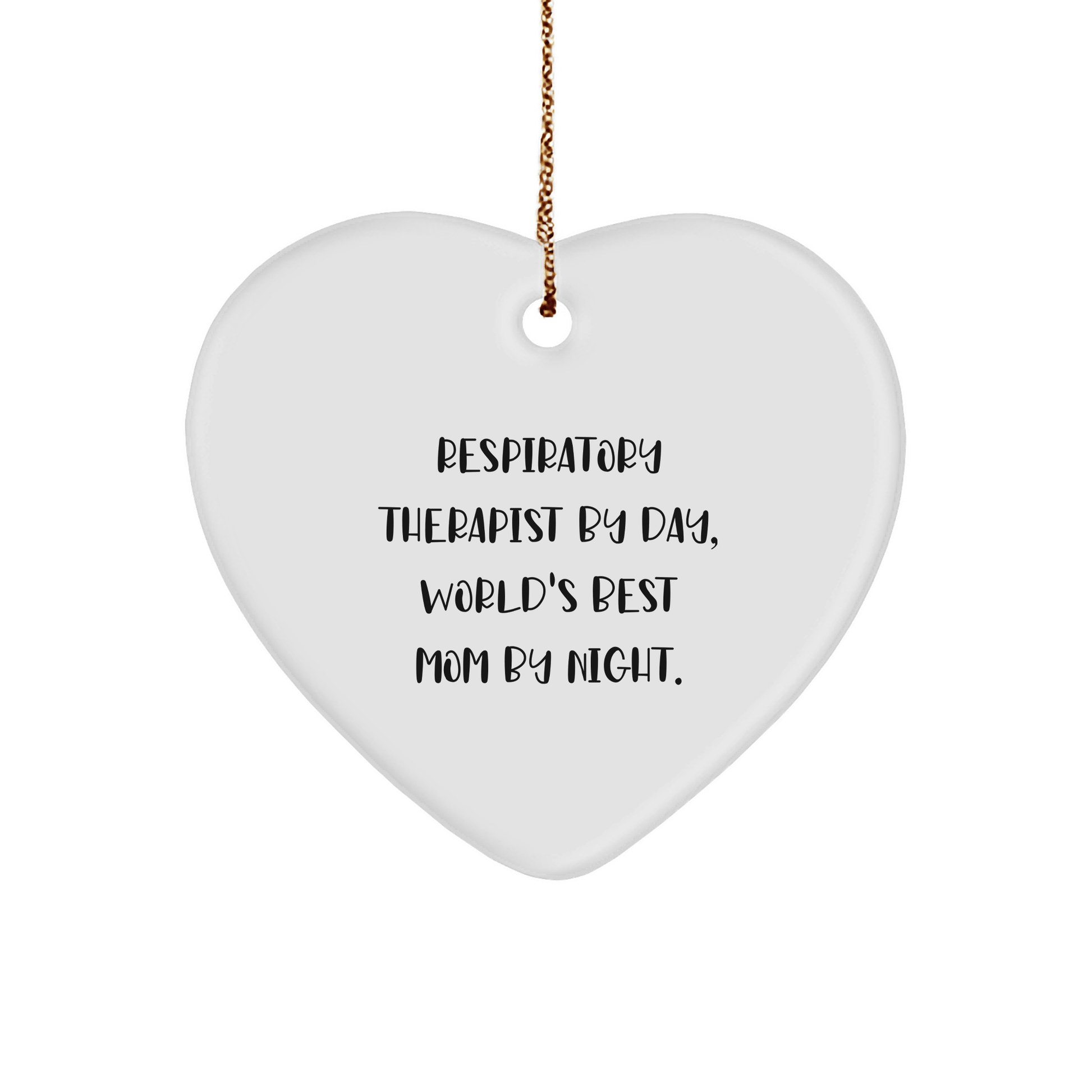 Celebrate the love and dedication of a Respiratory Therapist with this unique heart-shaped ornament. As a Respiratory Therapist by day, and a world's best mom by night, she deserves a special gift that shines. This vibrant and lightweight ornament is crafted with sturdy MDF and features a high-gloss finish, making it a perfect addition to any Christmas tree or decorative arrangement. It's a thoughtful gift for friends, family, or coworkers who appreciate the hard work and compassion of a Respiratory Therapist. This funny quote adds a touch of humor and whimsy to the design, making it a one-of-a-kind gift that will be treasured for years to come.