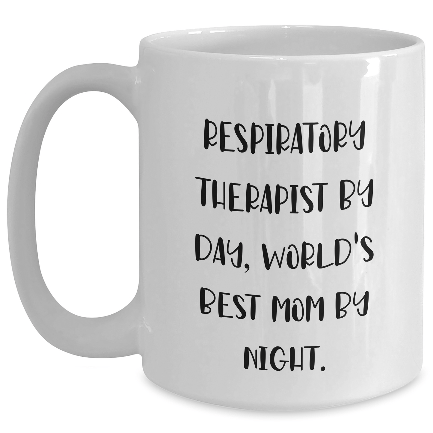 - Stand out with this unique 'Respiratory Therapist By Day, World's Best Mom By Night.' white coffee mug, perfect for the dedicated healthcare professional in your life. Made from ceramic, this 11oz or 15oz mug is microwave and dishwasher safe, making it easy to use and clean.