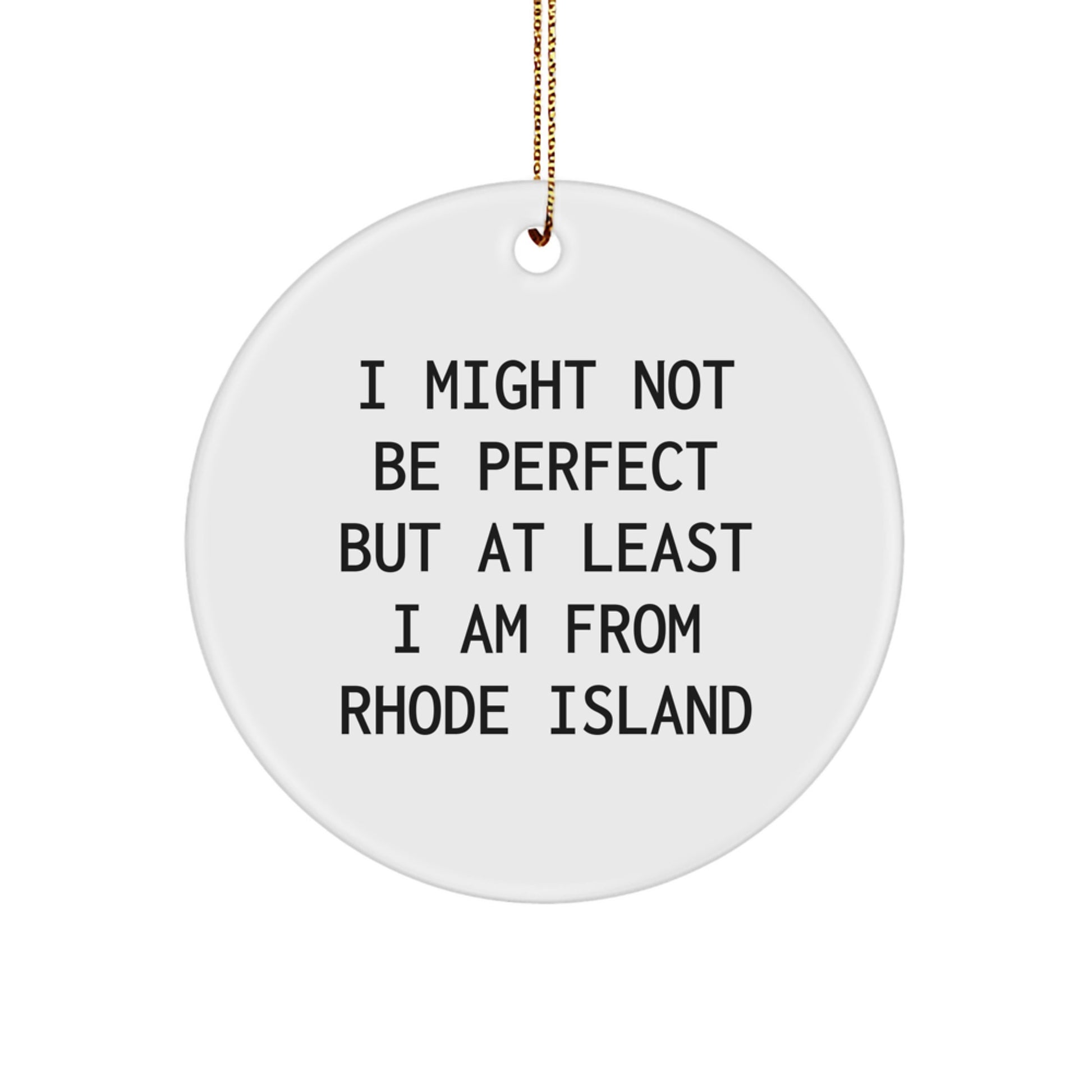 - Discover the perfect Rhode Island-themed gift with our 'I Might Not Be Perfect But At Least I Am From Rhode Island' quote beautifully crafted on a vibrant white circle ornament, expertly printed on high-quality MDF material with a durable high-gloss finish for long-lasting designs. (204 characters)