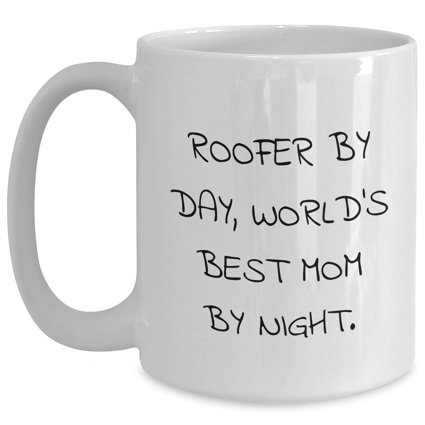 - Make a statement with this unique 'Roofer By Day, World's Best Mom By Night.' white coffee mug, perfect for the hardworking roofer in your life who deserves a break and a warm cup of coffee.