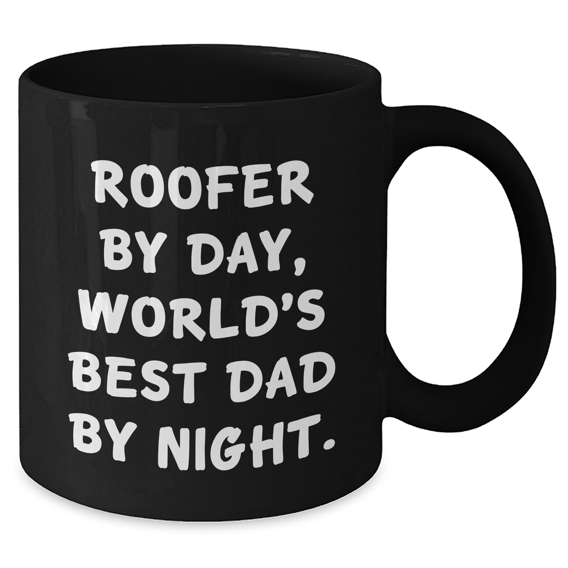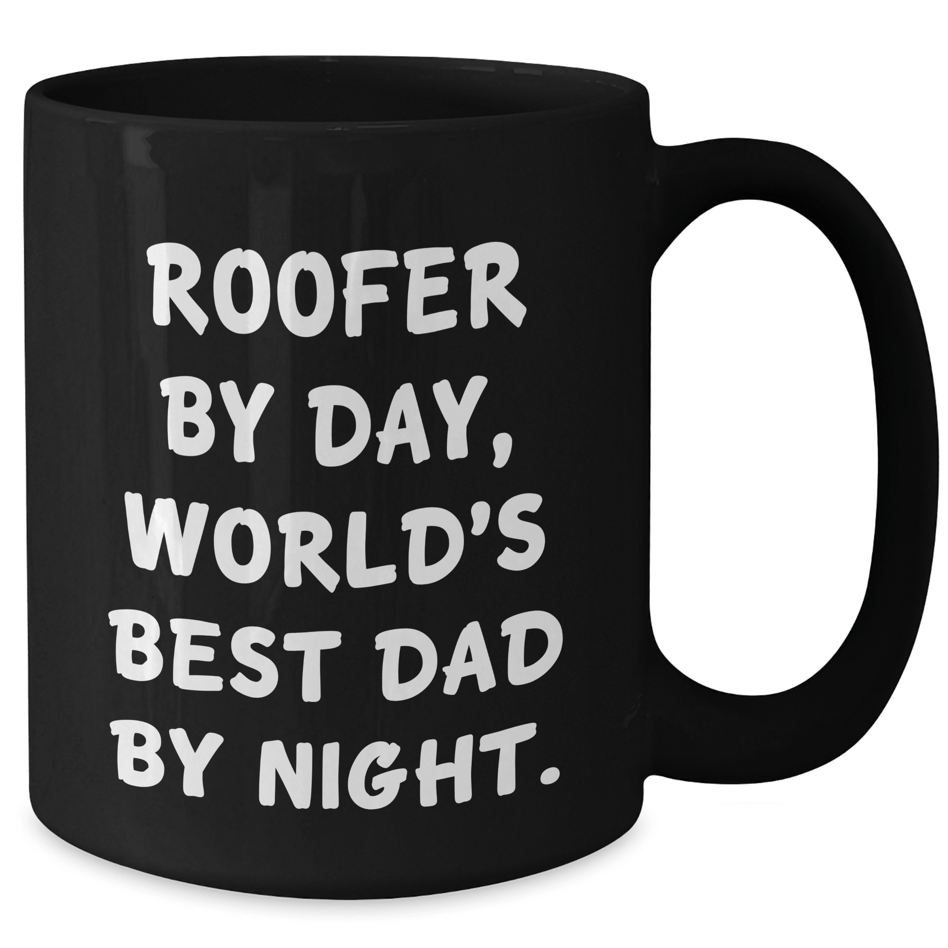 - Make a statement with this unique 'Roofer By Day, World's Best Dad By Night.' black coffee mug, perfect for the hardworking roofer in your life. The 11oz or 15oz ceramic mug is not only functional but also a thoughtful gift for Mother's Day, showing your appreciation for their hard work and dedication.