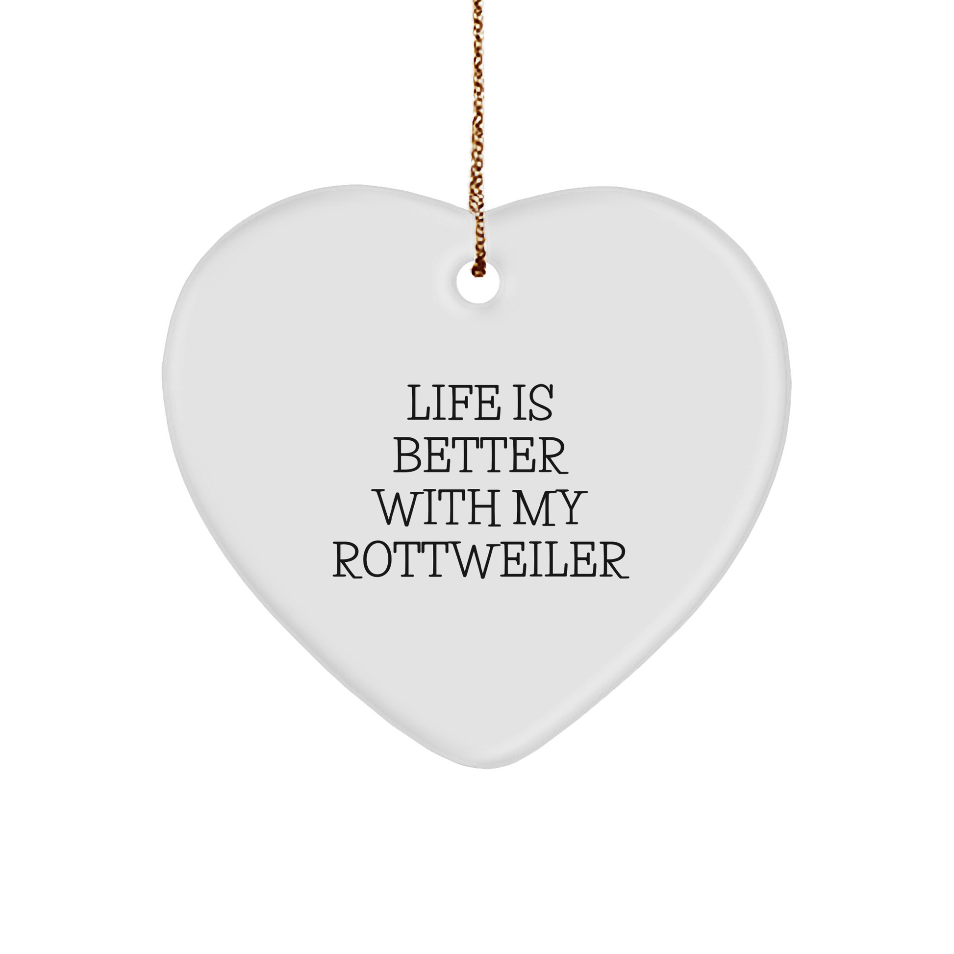 - Show your love and appreciation for your Rottweiler Dog with this heart-shaped ornament, featuring the inspirational quote 'Life Is Better With My Rottweiler' in vibrant colors.