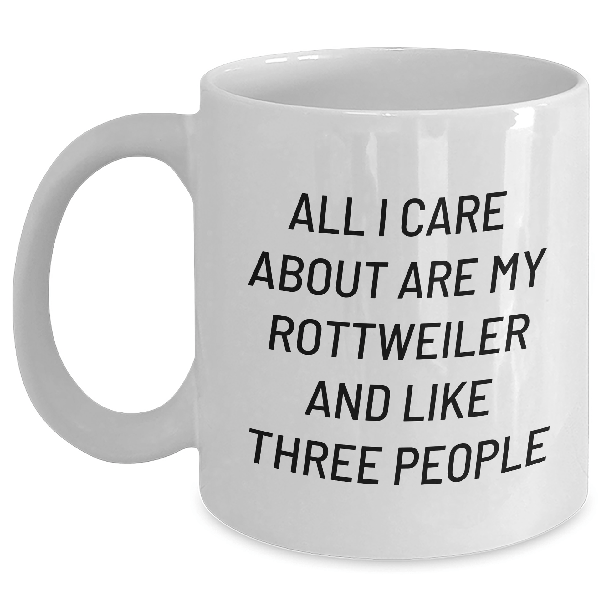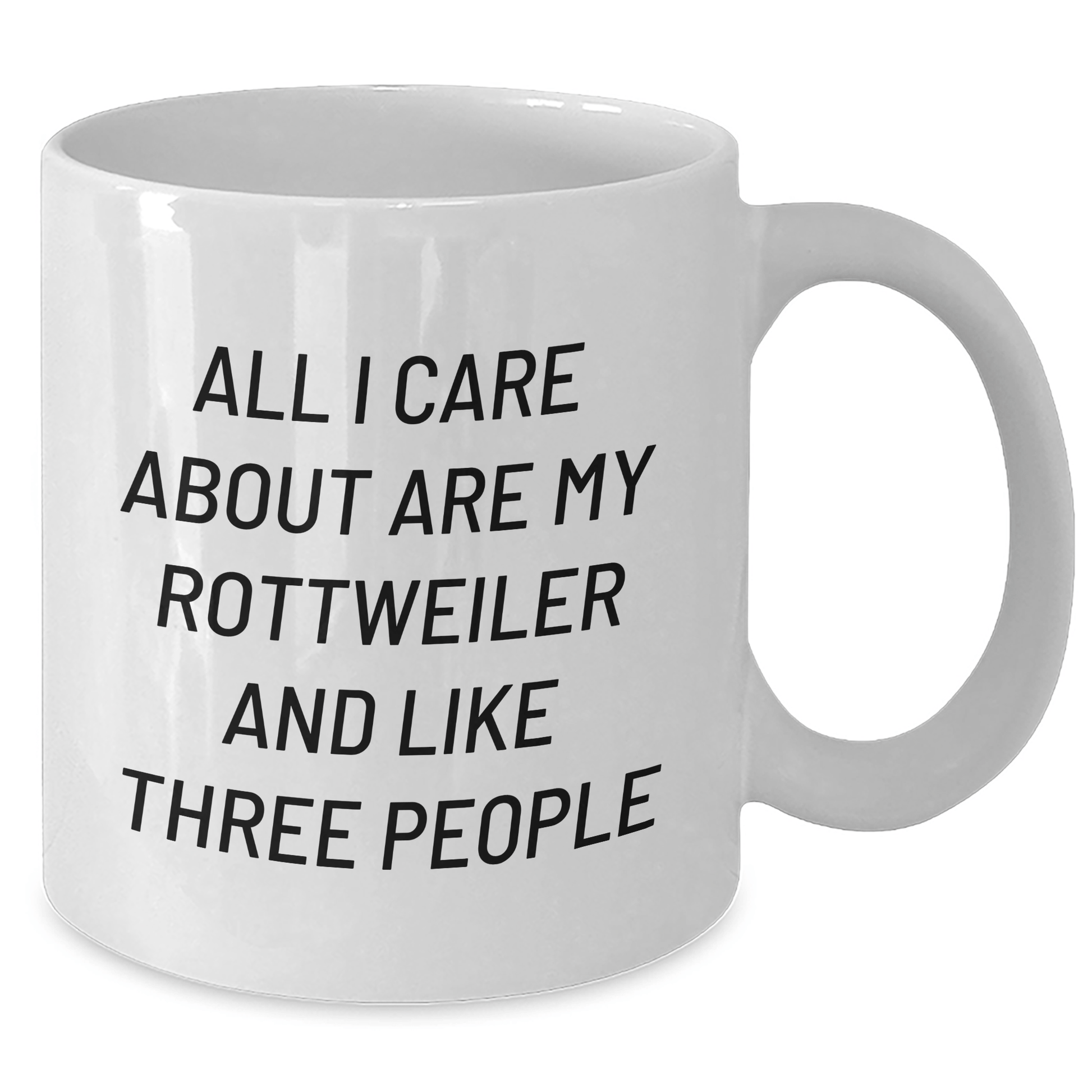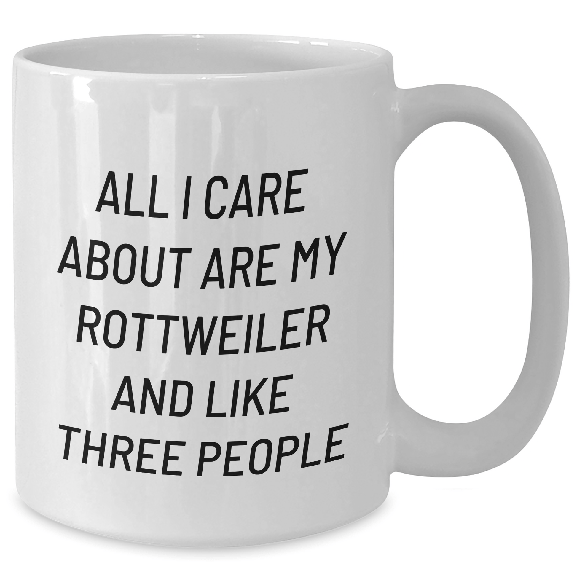 - The funny quote 'All I Care About Are My Rottweiler And Like Three People' is printed in a humorous tone, making it a unique and thoughtful gift.