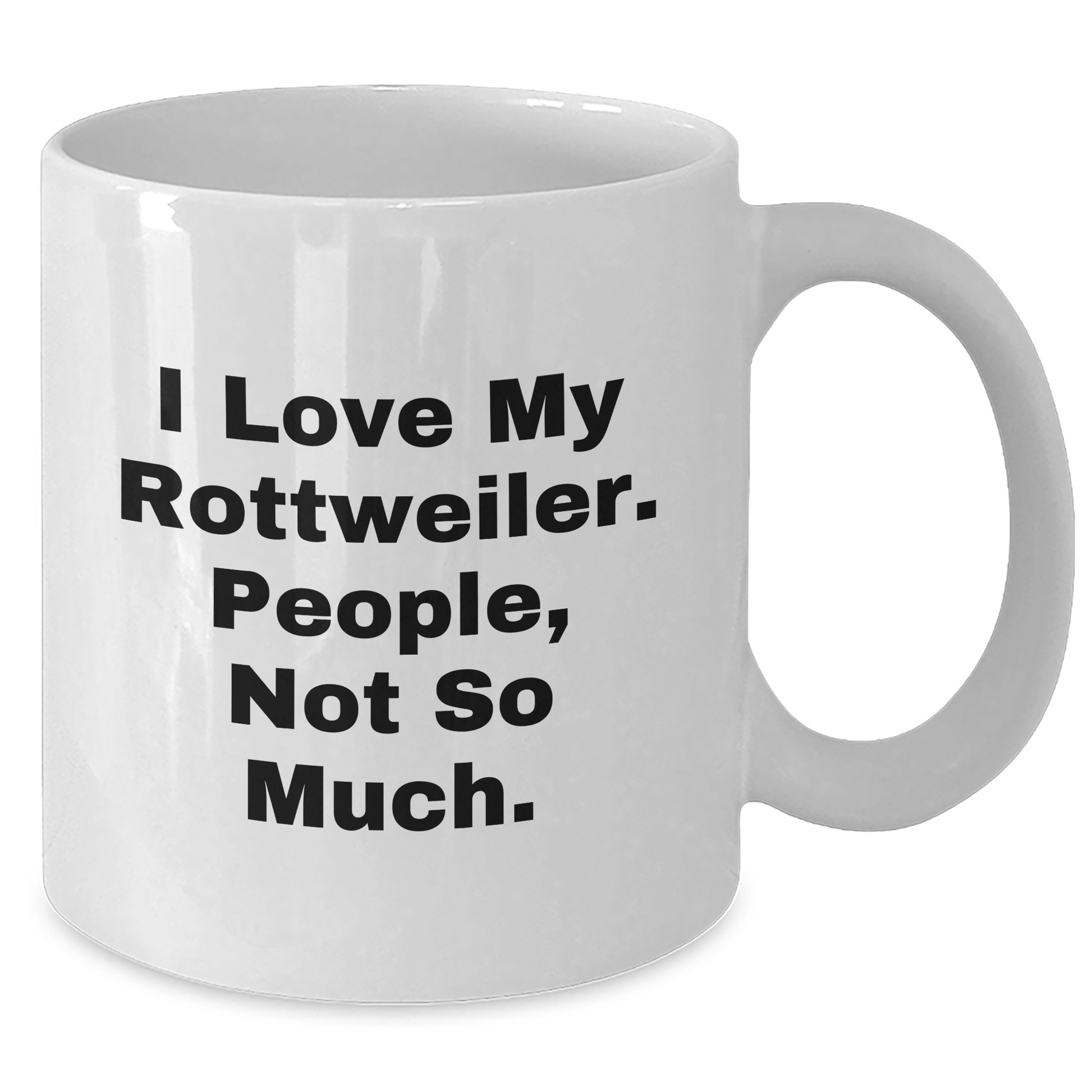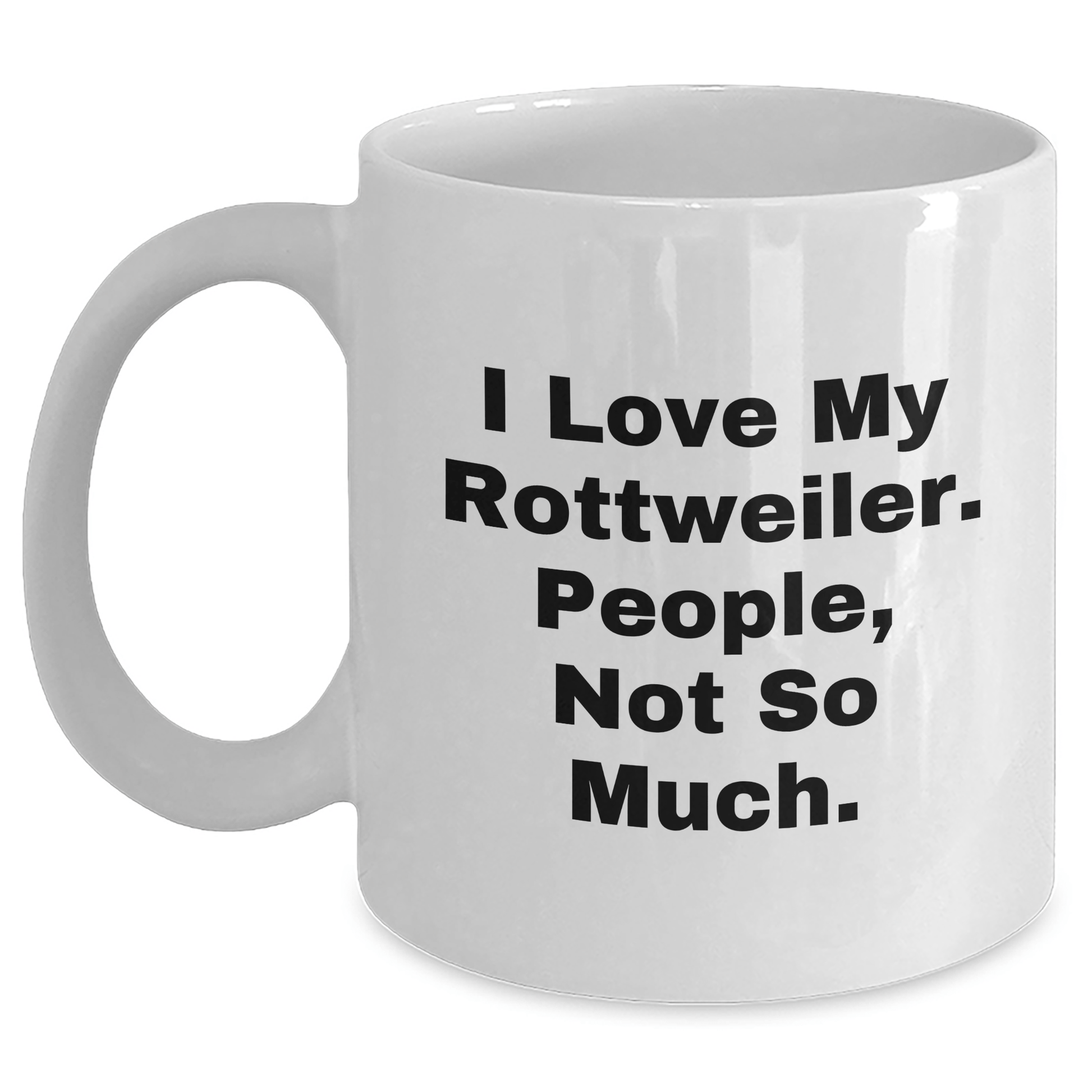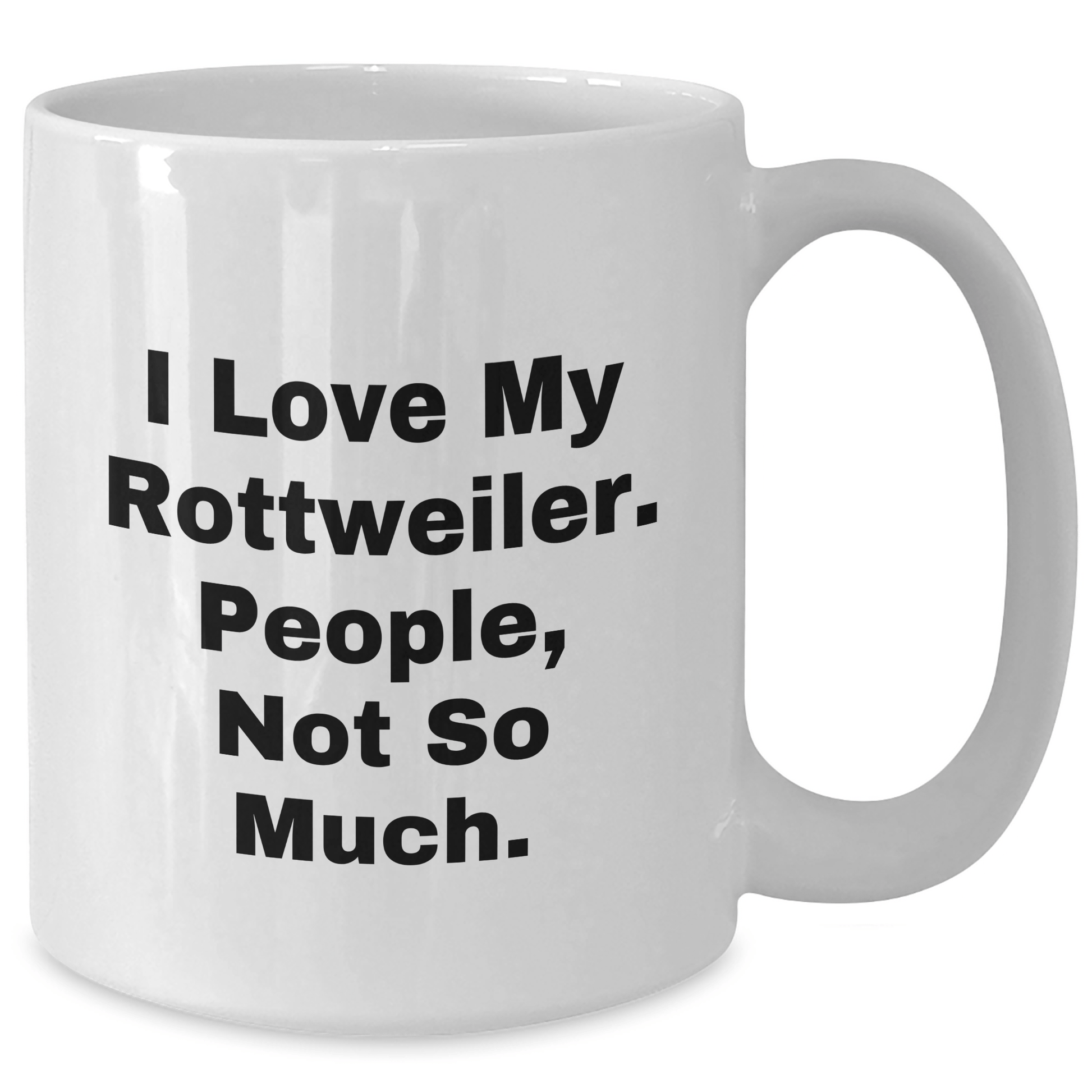 If you're a Rottweiler Dog enthusiast, you'll love this funny quote coffee mug! The quote 'I Love My Rottweiler. People, Not So Much.' is a humorous take on the love-hate relationship many dog owners have with their furry friends. This white ceramic coffee mug is available in 11oz or 15oz capacity and is perfect for any Rottweiler Dog owner, whether it's Father's Day or just because. Make it a gift for the special Rottweiler Dog lover in your life, and they'll appreciate the thought and humor. This mug is also microwave and dishwasher safe, making it easy to clean and use. So, if you're looking for a unique and funny gift for a Rottweiler Dog owner, look no further!