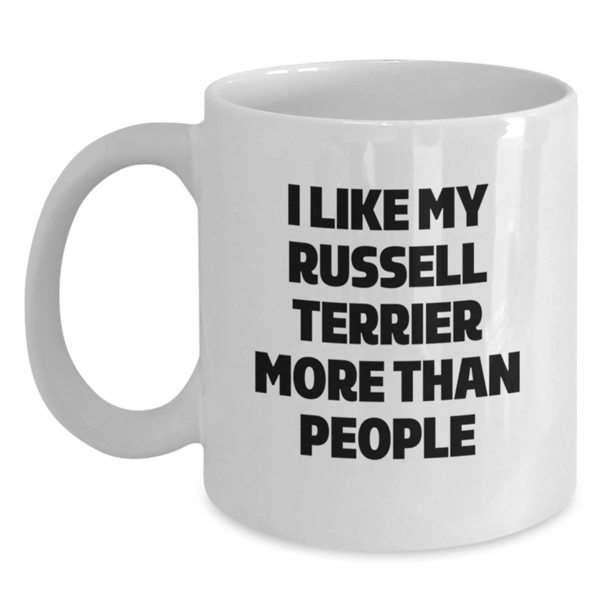 Are you a Russell Terrier Dog enthusiast? Do you know someone who loves their Russell Terrier Dog more than people? This funny quote coffee mug is the ideal gift for them! Made from ceramic, this 11oz or 15oz white coffee mug is microwave and dishwasher safe, making it easy to clean and use. Whether you're a friend, family member, or coworker, this gift is sure to bring a smile to their face. Show off your love for Russell Terrier Dogs with this unique birthday gift.