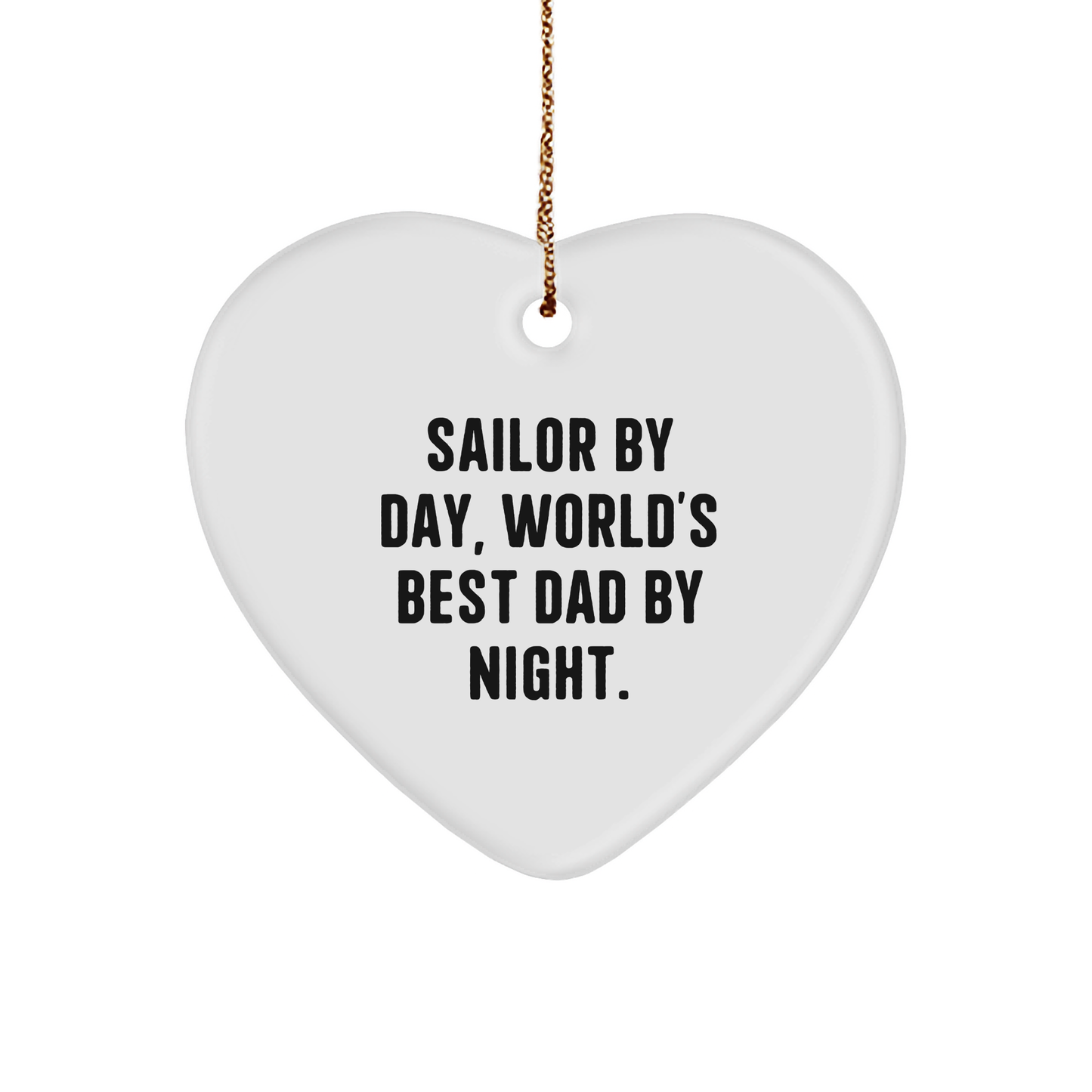 Are you looking for a unique and funny gift for the sailor in your life? Look no further! This 'Sailor By Day, World's Best Dad By Night.' heart ornament is a perfect addition to any Christmas decoration. Made from sturdy MDF with a high-gloss plastic finish, it's lightweight and resistant to breaking, making it a great choice for households with children or pets.