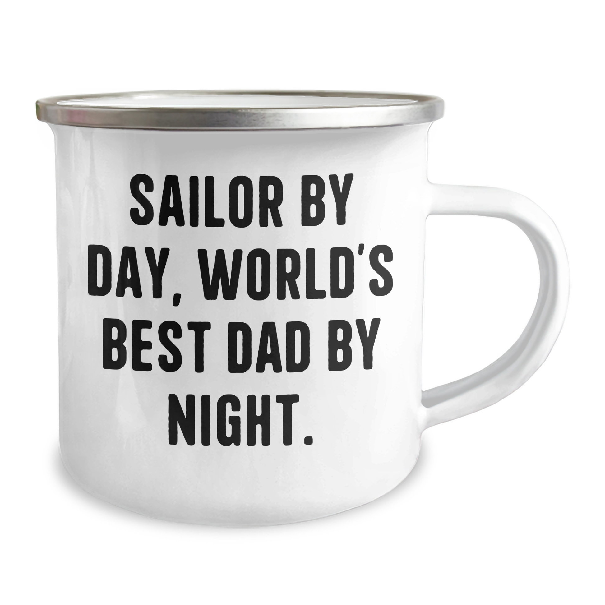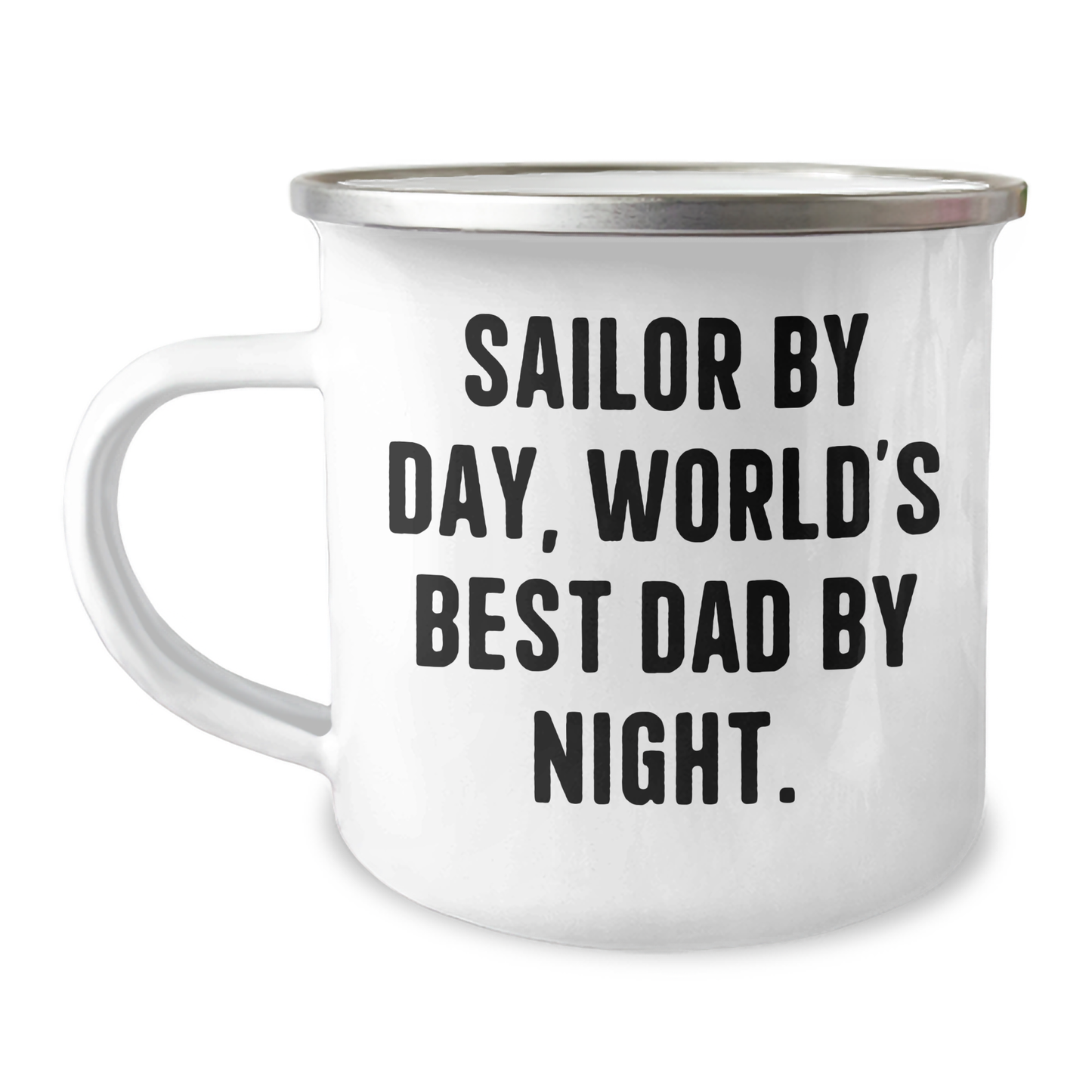 This 'Sailor By Day, World's Best Dad By Night.' camping mug is a unique and thoughtful gift for any sailor. Perfect for Father's Day or any other occasion, this mug is a great way to show your love and appreciation. So why wait? Buy this mug today and make your sailor feel special!