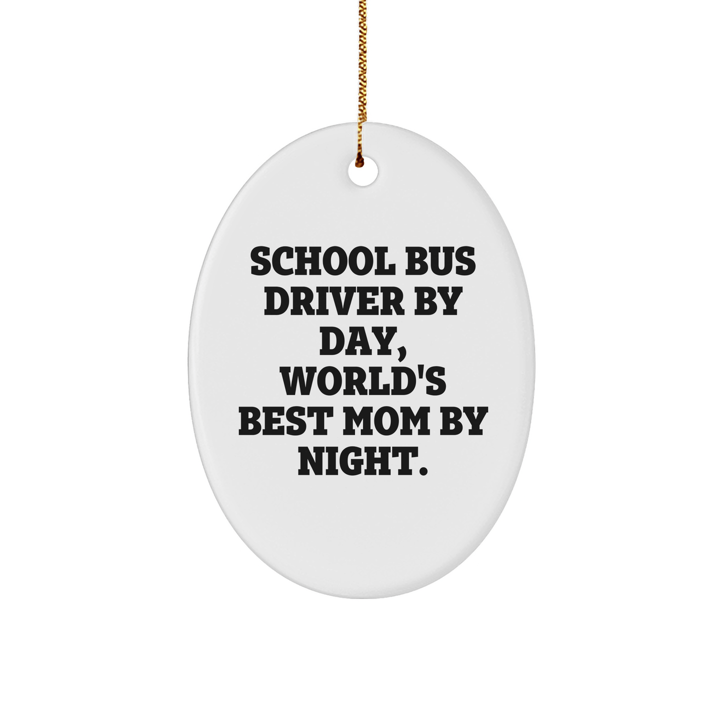 - Make a lasting impression on your School Bus Driver with this thoughtful Oval Ornament, featuring the quote 'School Bus Driver By Day, World's Best Mom By Night.' - a heartwarming tribute to their dedication and love.