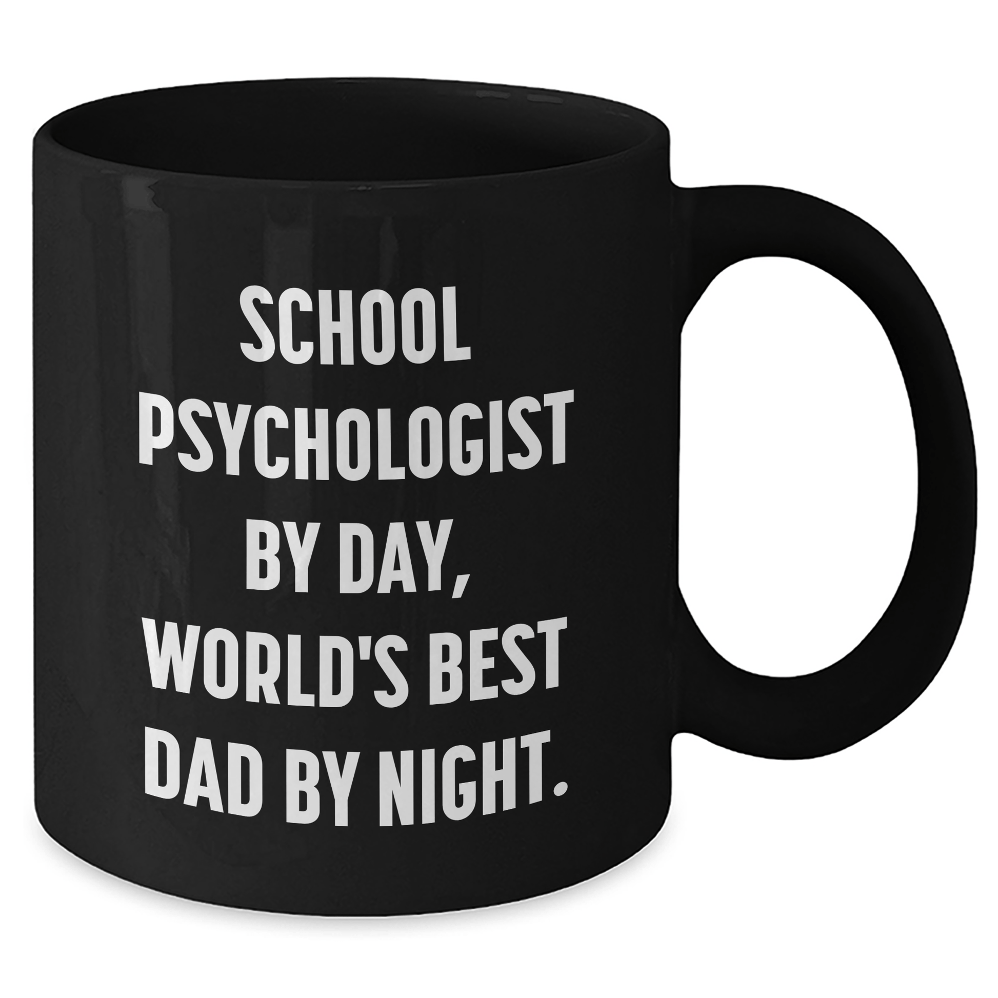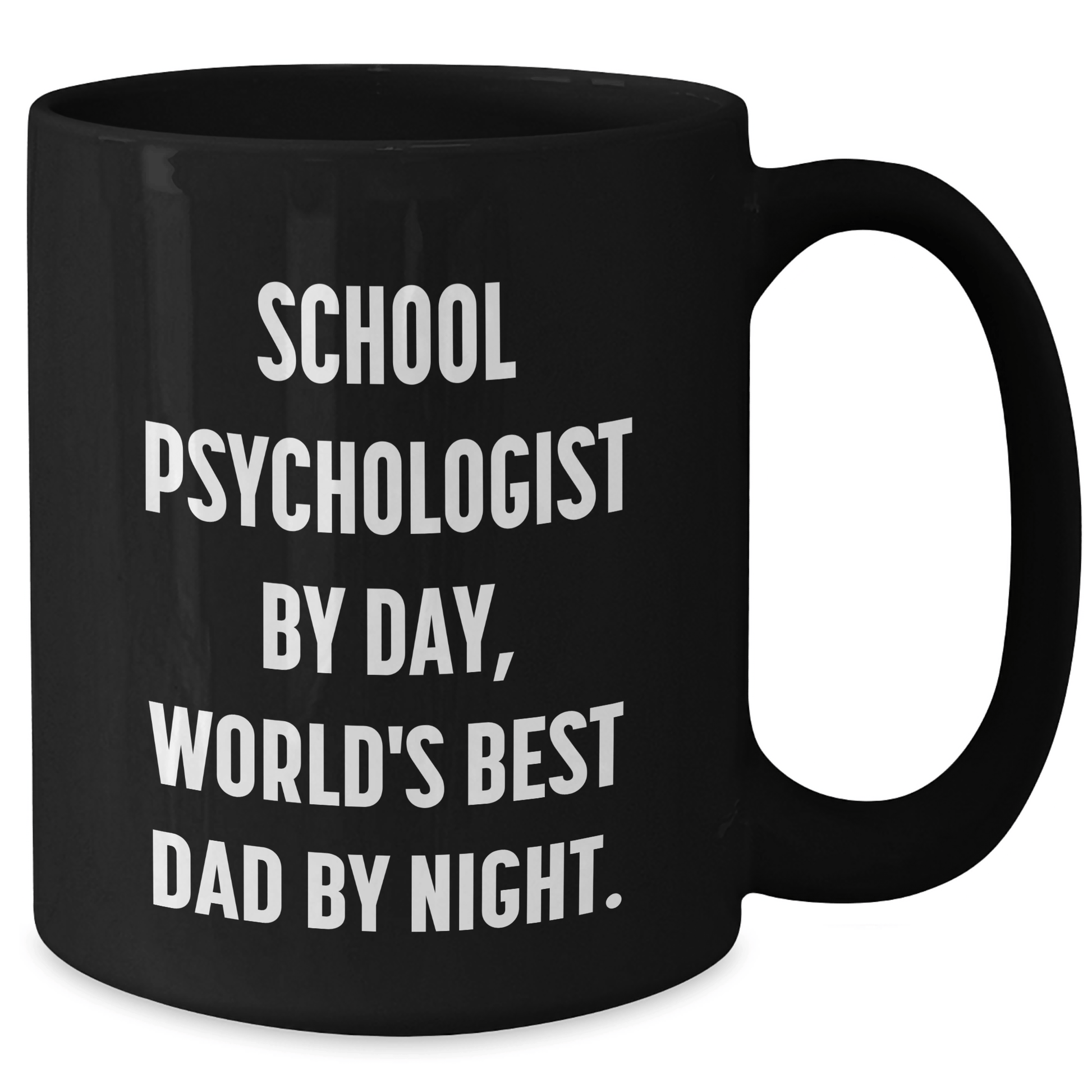 Are you looking for a unique gift for the school psychologist in your life? This funny quote mug is the perfect way to celebrate their dedication and hard work. With a capacity of 11oz or 15oz, these ceramic mugs are microwave and dishwasher safe, making them easy to use and clean. The quote 'School Psychologist By Day, World's Best Dad By Night.' is a humorous way to acknowledge the school psychologist's dual role as a dedicated professional and a loving parent. Whether you're buying for a mom or a dad, this mug is a thoughtful gift that shows you care.