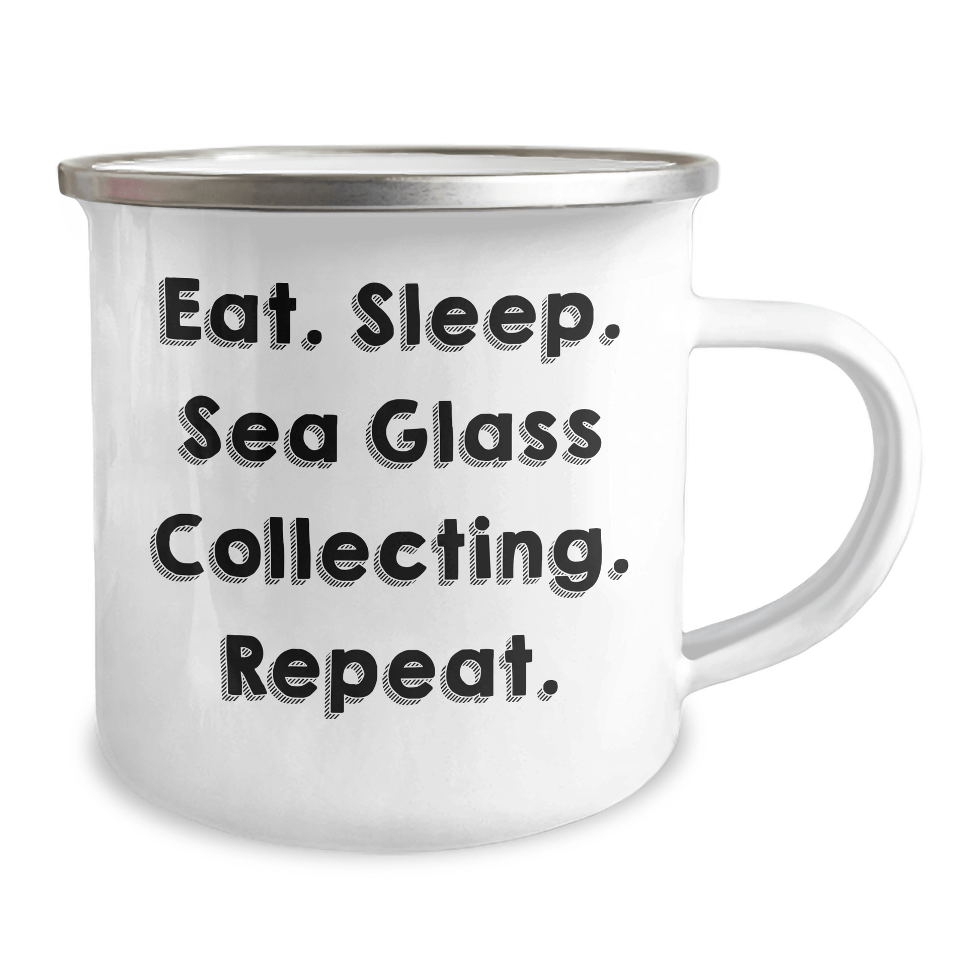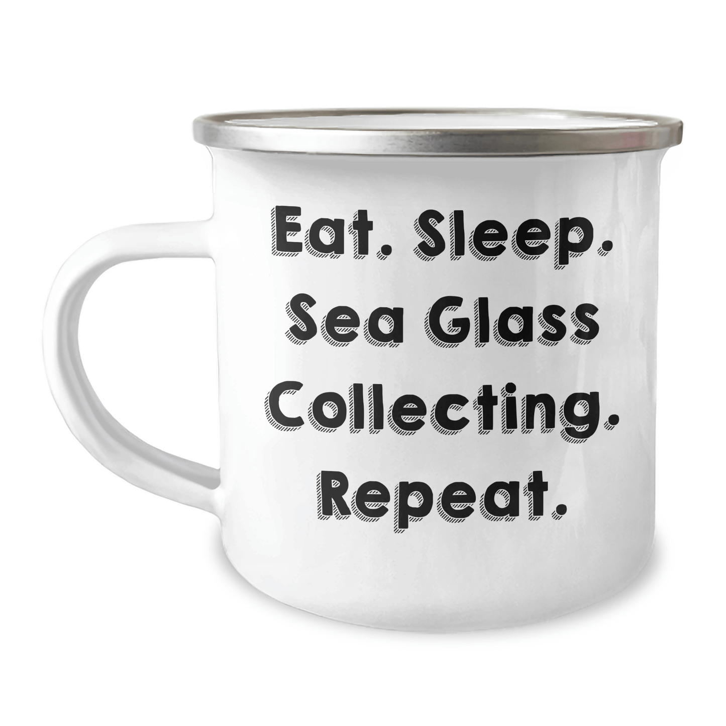 - This funny quote, 'Eat. Sleep. Sea Glass Collecting. Repeat.', is a unique way to showcase your love for sea glass collecting and bring a smile to the face of any sea glass collector.