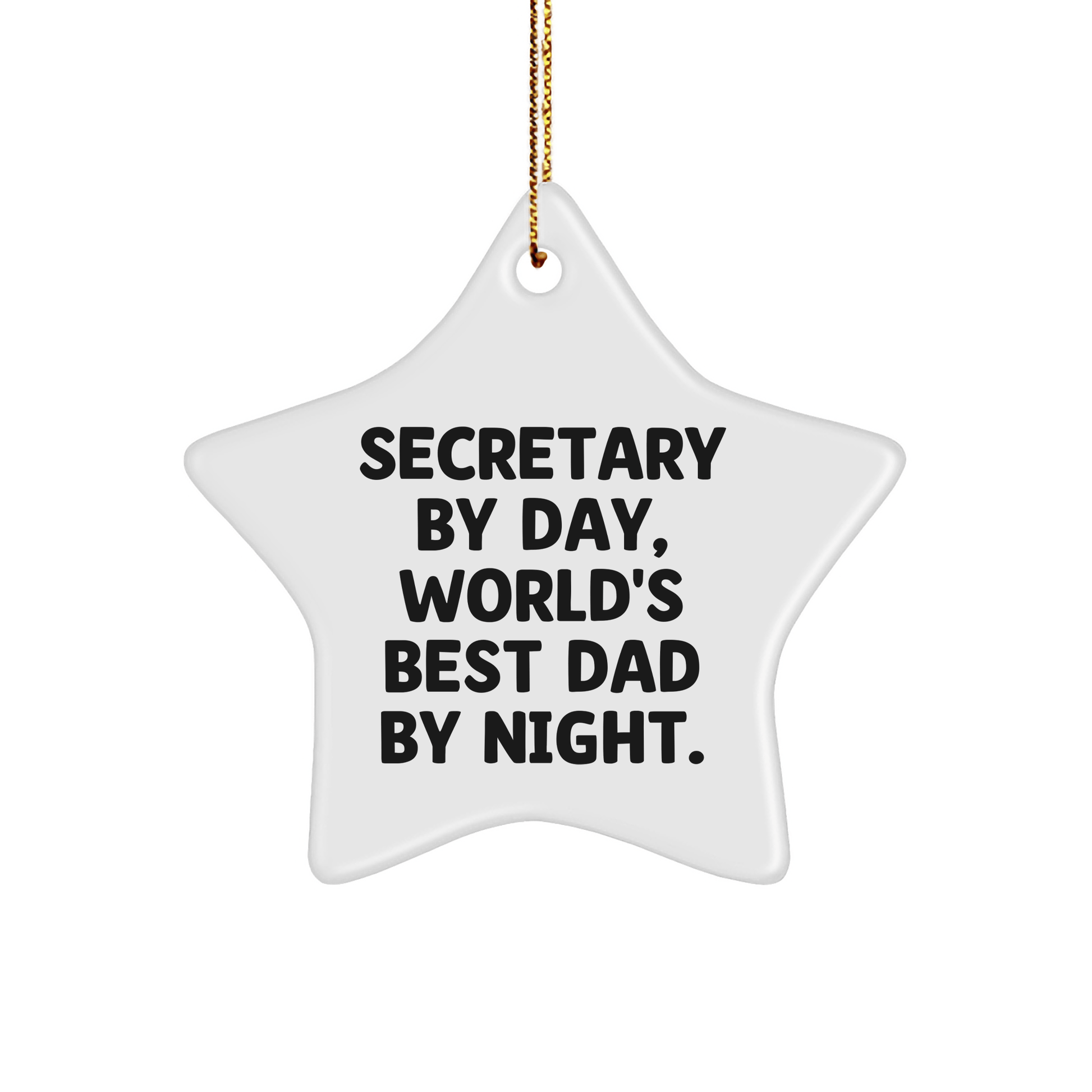 - Make a statement on your Christmas tree or mantel with this 'Secretary By Day, World's Best Dad By Night.' star ornament, crafted from sturdy MDF and featuring a high-gloss plastic finish for long-lasting designs. A thoughtful gift for any secretary or dad who deserves recognition (200-250 characters).
