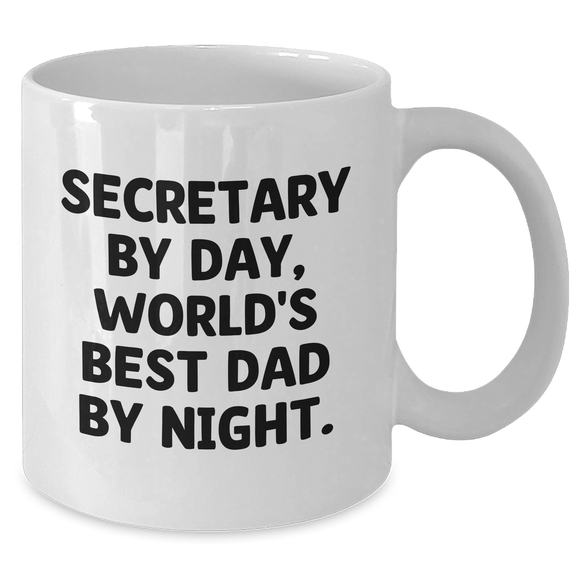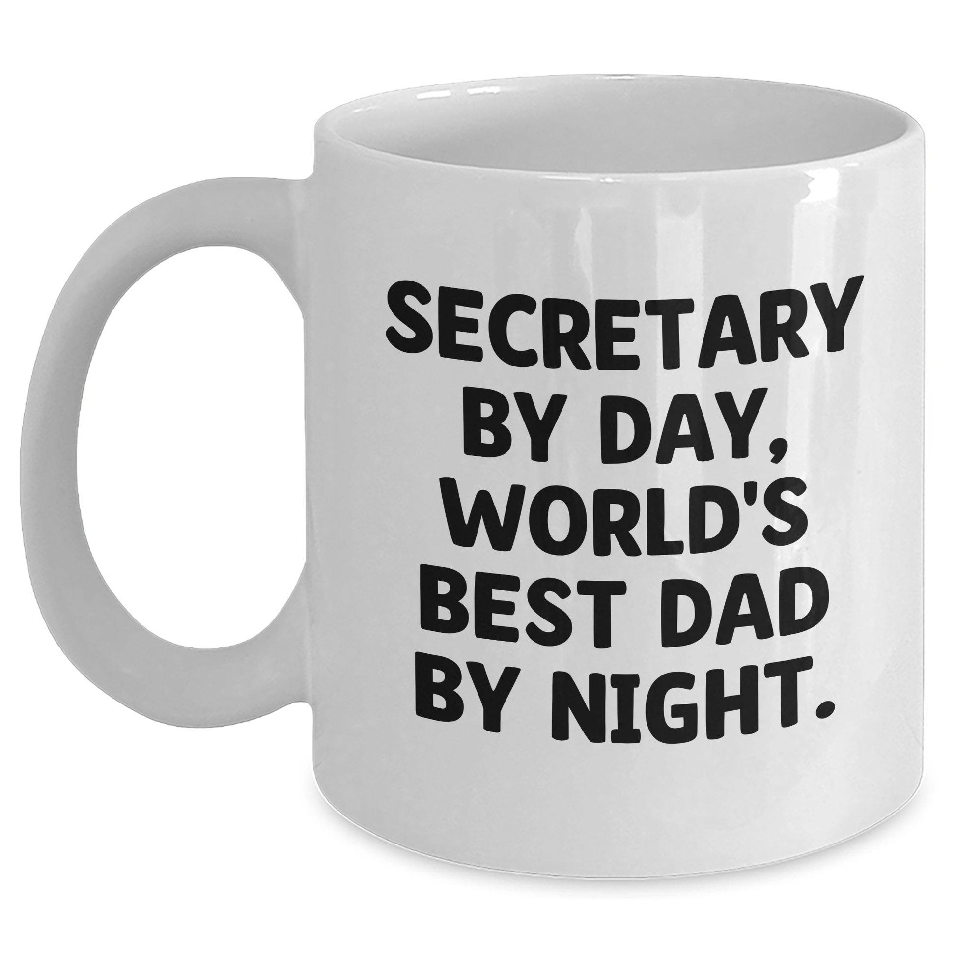 Are you looking for a unique gift for your secretary? Look no further! This funny white coffee mug featuring the quote 'Secretary By Day, World's Best Dad By Night' is the perfect way to show your appreciation for their hard work and dedication.