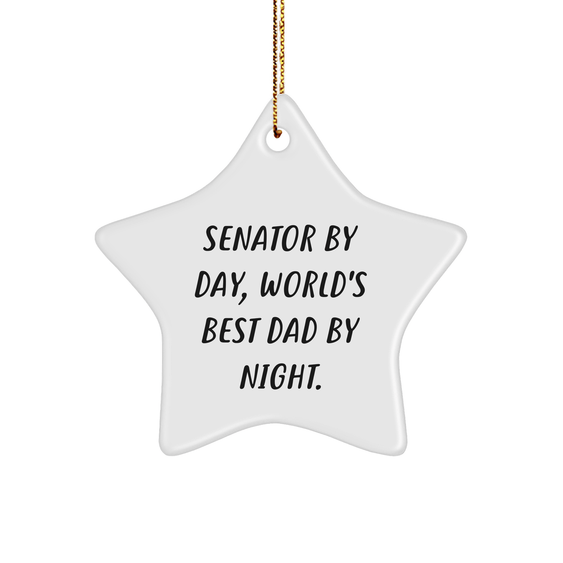 - Make a statement with this unique Star Ornament, featuring the funny quote 'Senator By Day, World's Best Dad By Night'