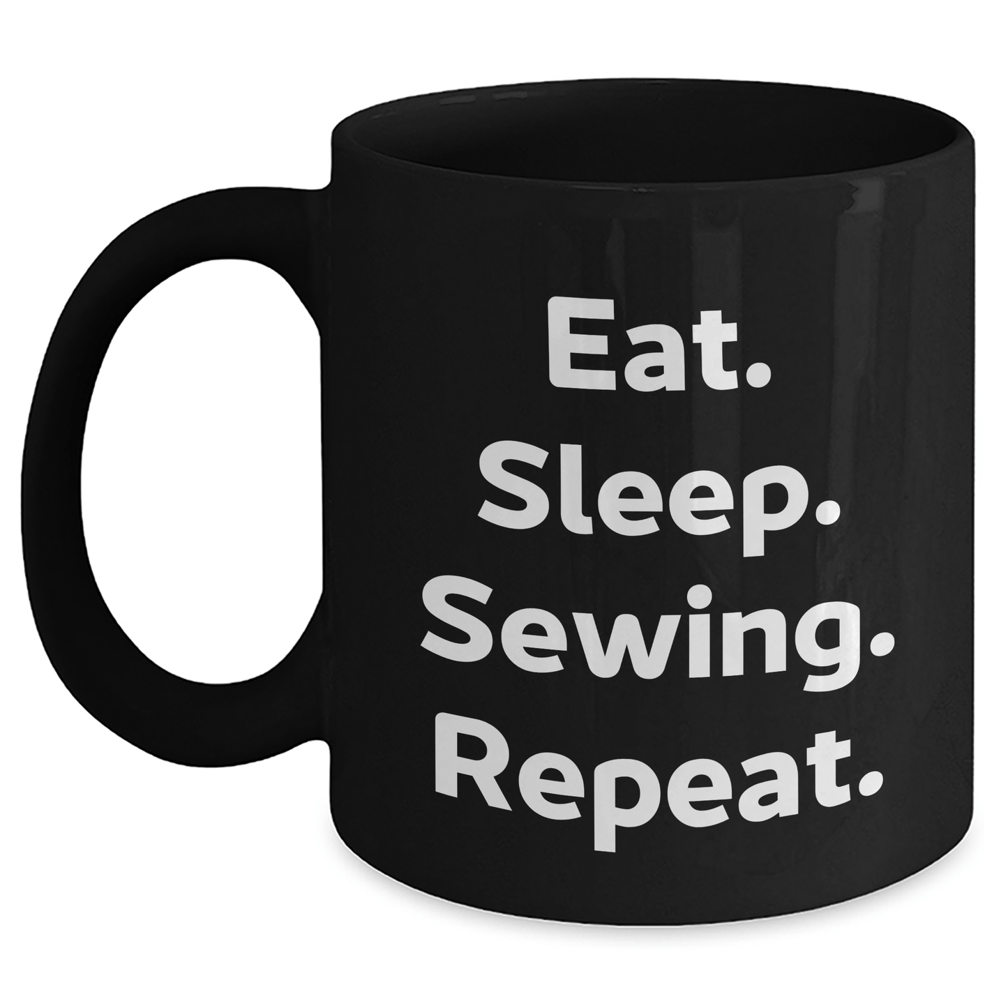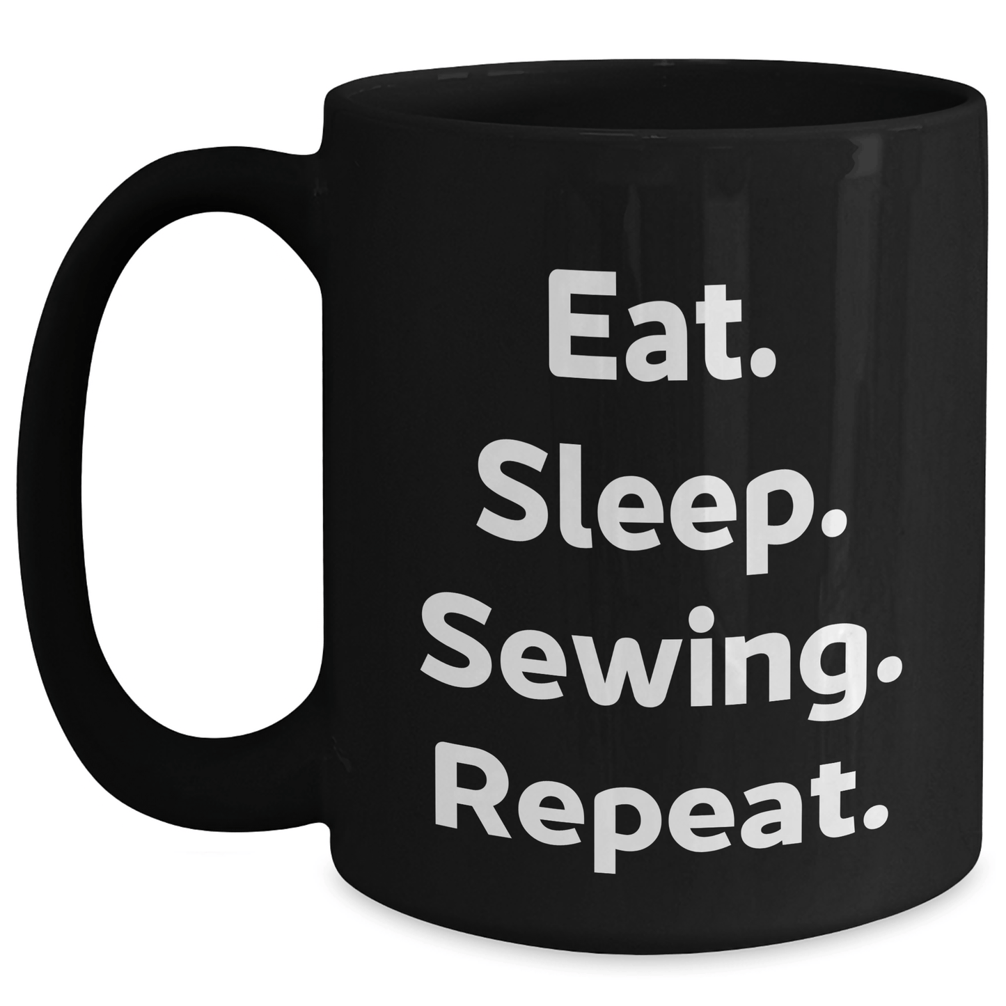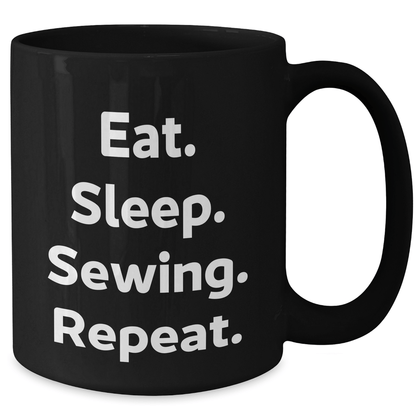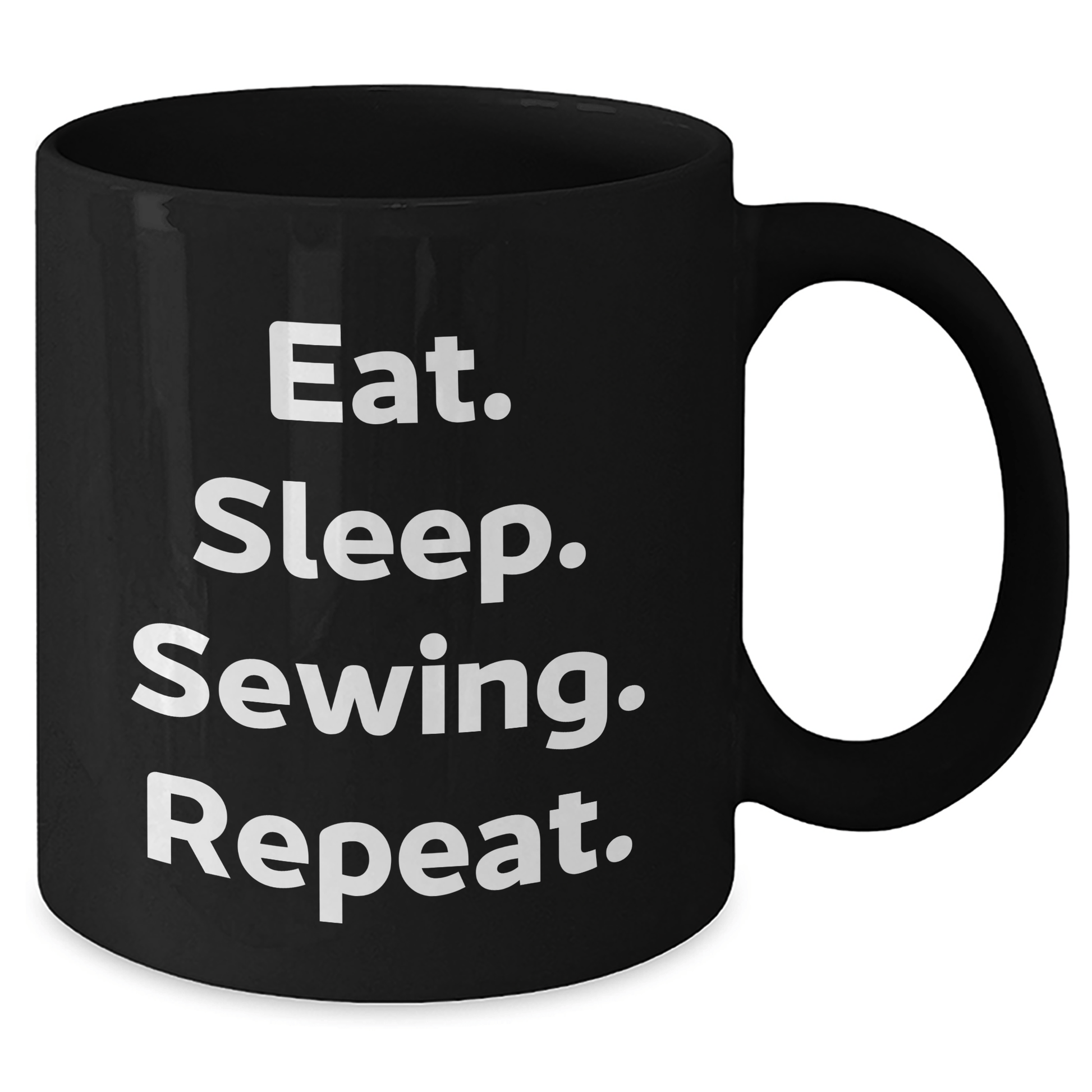 - This black coffee mug is a great gift for sewing enthusiasts, with its inspiring quote 'Eat. Sleep. Sewing. Repeat.' it's sure to bring a smile to their face.