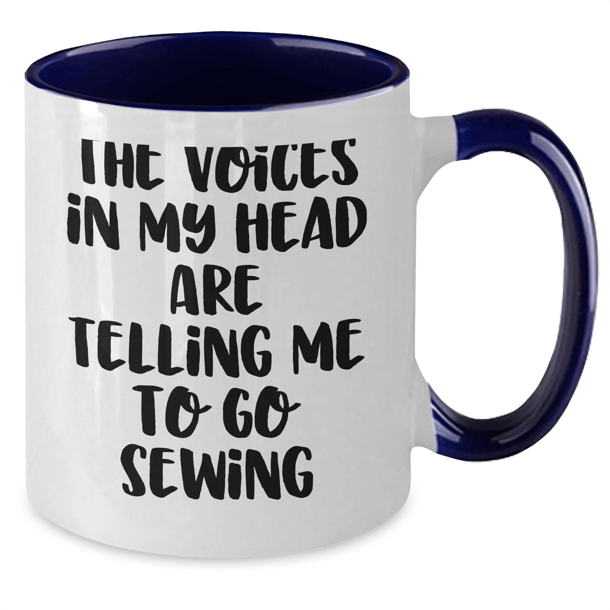 Are you a sewing enthusiast or know someone who loves to sew? This funny two tone coffee mug is the ideal gift for graduation season! With its unique quote, 'The Voices In My Head Are Telling Me To Go Sewing', this ceramic mug is sure to bring a smile to any sewer's face. Made from high-quality ceramic, this 11oz mug is microwave and dishwasher safe, making it easy to clean and use. Whether you're a sewing newbie or a seasoned pro, this mug is a great way to show off your love for sewing. So why not get one for yourself or gift it to a fellow sewing enthusiast? It's a thoughtful and unique gift that's sure to be appreciated.