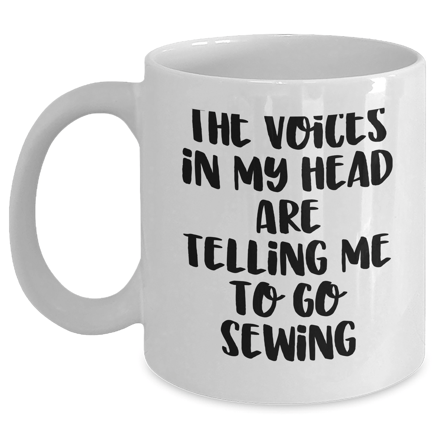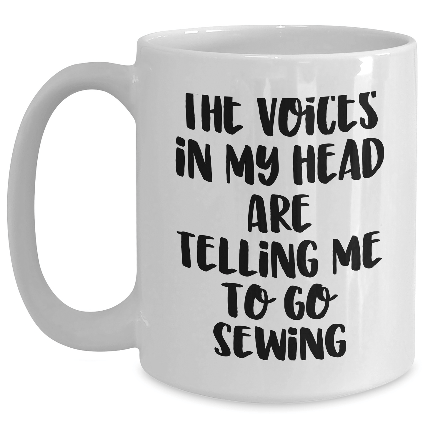 Are you a sewing enthusiast or know someone who loves to sew? This funny white coffee mug is the ideal gift for them! Made from ceramic, microwave, and dishwasher safe, it's a practical and thoughtful present for any sewing lover. The quote 'The Voices In My Head Are Telling Me To Go Sewing' is a hilarious and relatable phrase that will bring a smile to their face every time they use it. Whether it's a graduation gift, a birthday present, or just a random act of kindness, this white coffee mug is sure to delight. So why wait? Get your sewing gift today and spread some joy!